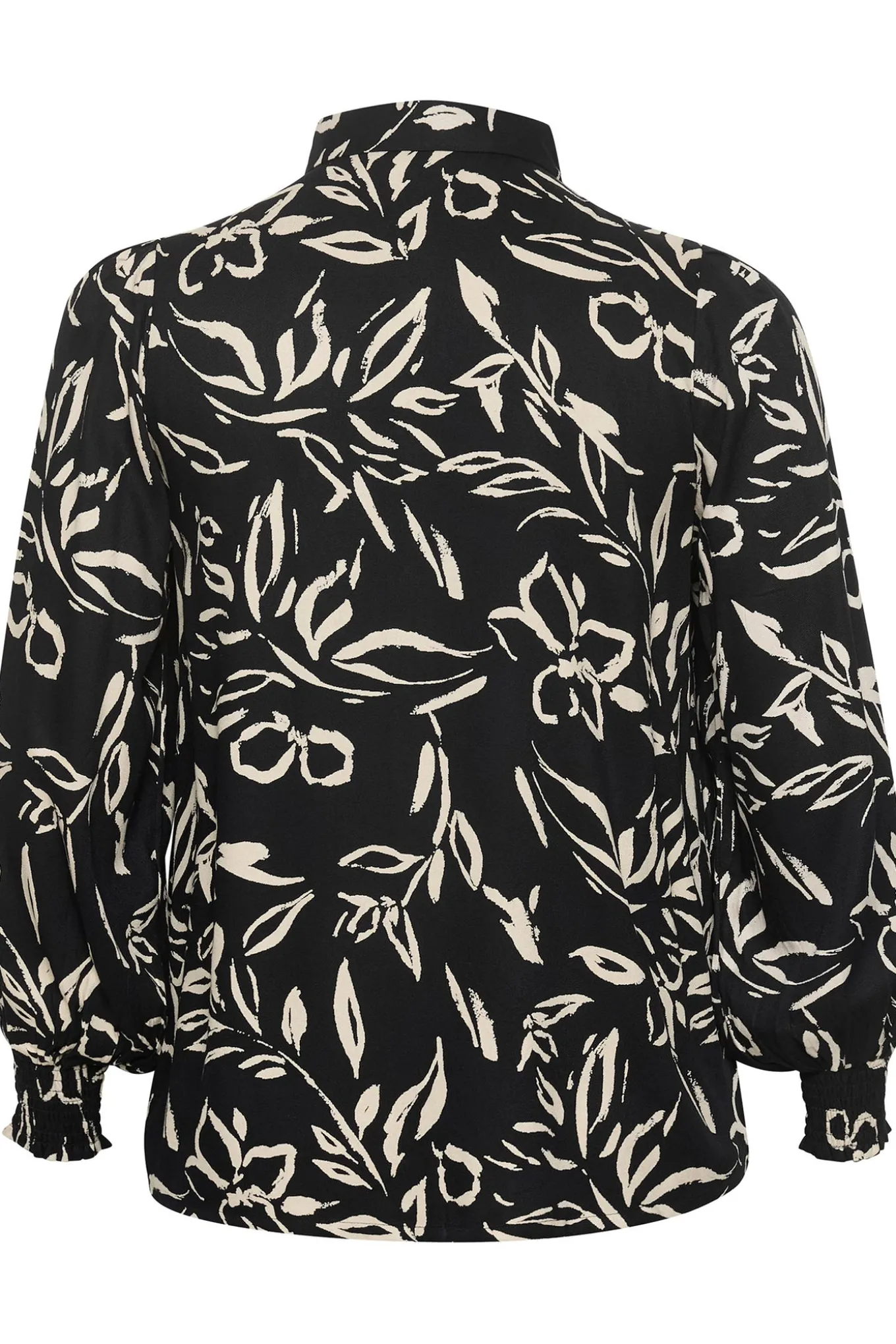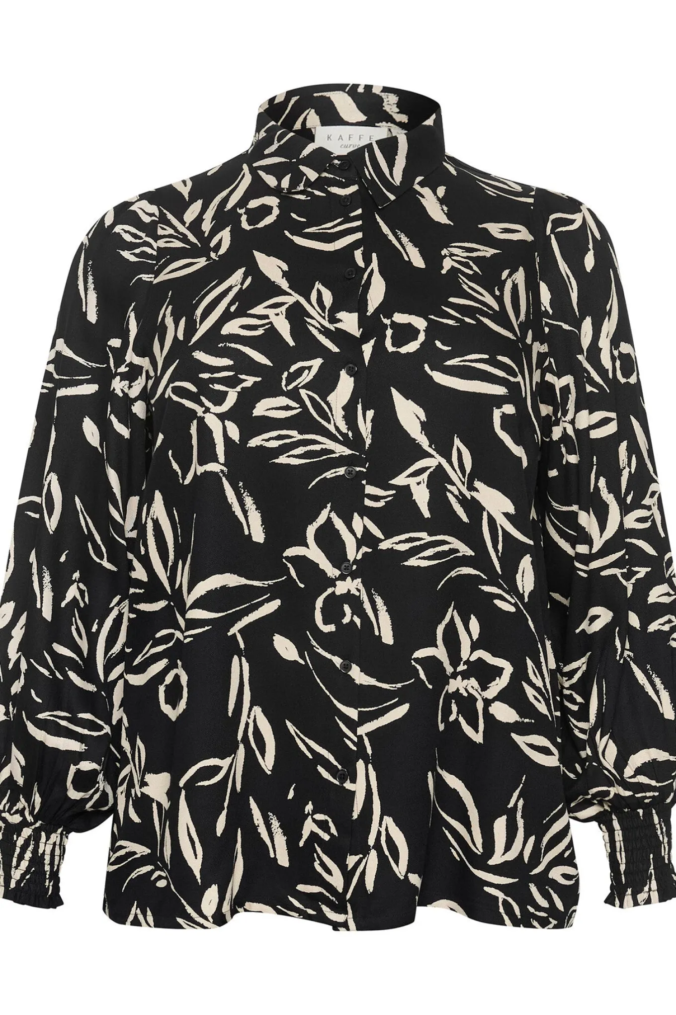Et must-have til din garderobe! Denne bluse fra Kaffe Curve er malet i en elegant sort og sandfarvet blomsterprint. Den er lavet af kvalitetsmaterialer og giver et tidløst og alsidigt udtryk.