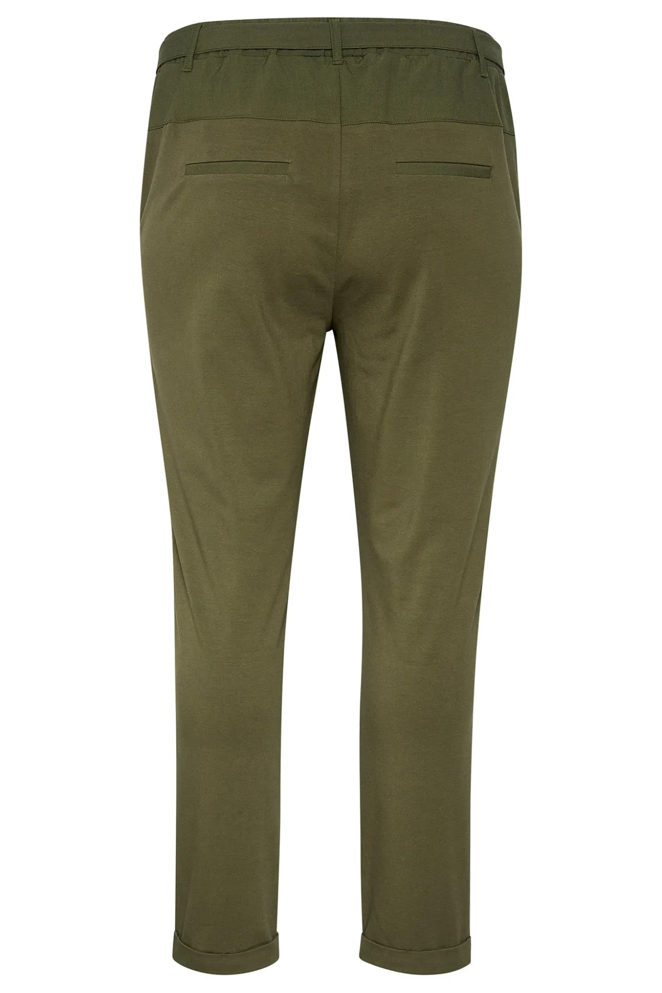 OBS! Fjernlager. Levering kan blive forlænget med 2-3 dage, hvis varen ikke findes i vores butik lige nu.Smarte bukser fra Kaffe Curve med elastikkant og bindebælte i taljen, en slim-leg silhuet og en lækker kvalitet.