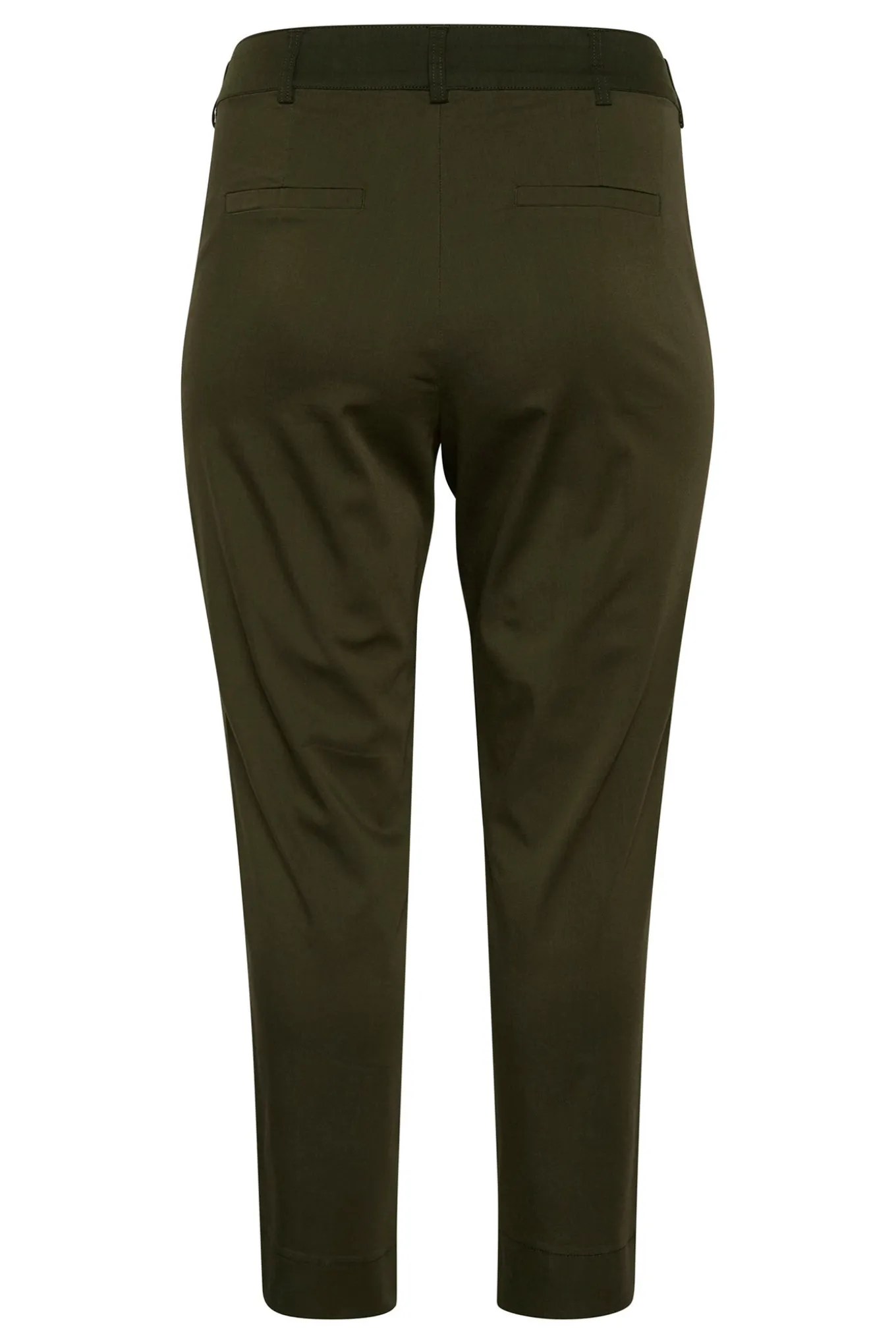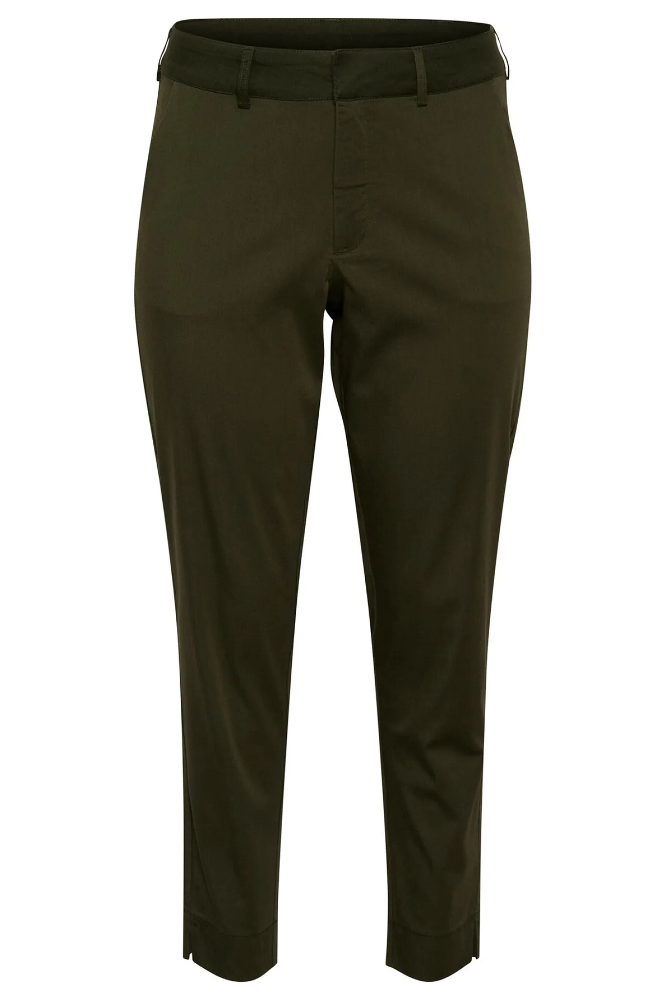 OBS! Fjernlager. Levering kan blive forlænget med 2-3 dage, hvis varen ikke findes i vores butik lige nu.Flotte chinos fra Kaffe Curve med en bred kant i taljen, bæltestropper og en cropped længde.