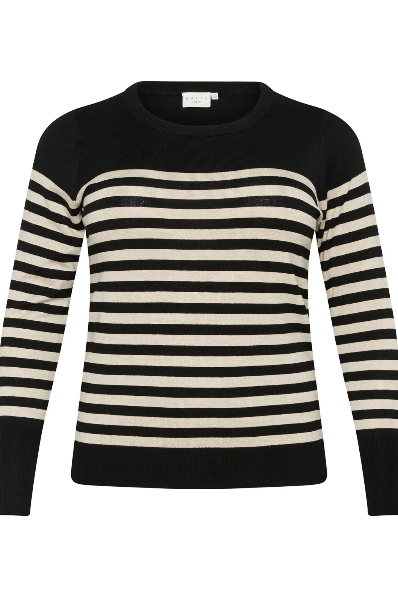 OBS! Fjernlager. Levering kan blive forlænget med 2-3 dage, hvis varen ikke findes i vores butik lige nu.Smart strik fra Kaffe Curve med lange ærmer, rund hals og fine striber.