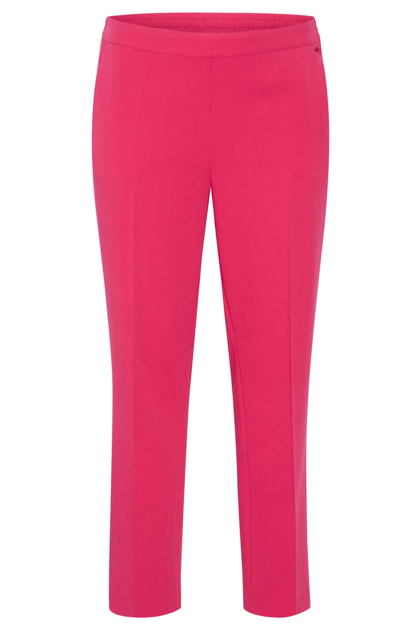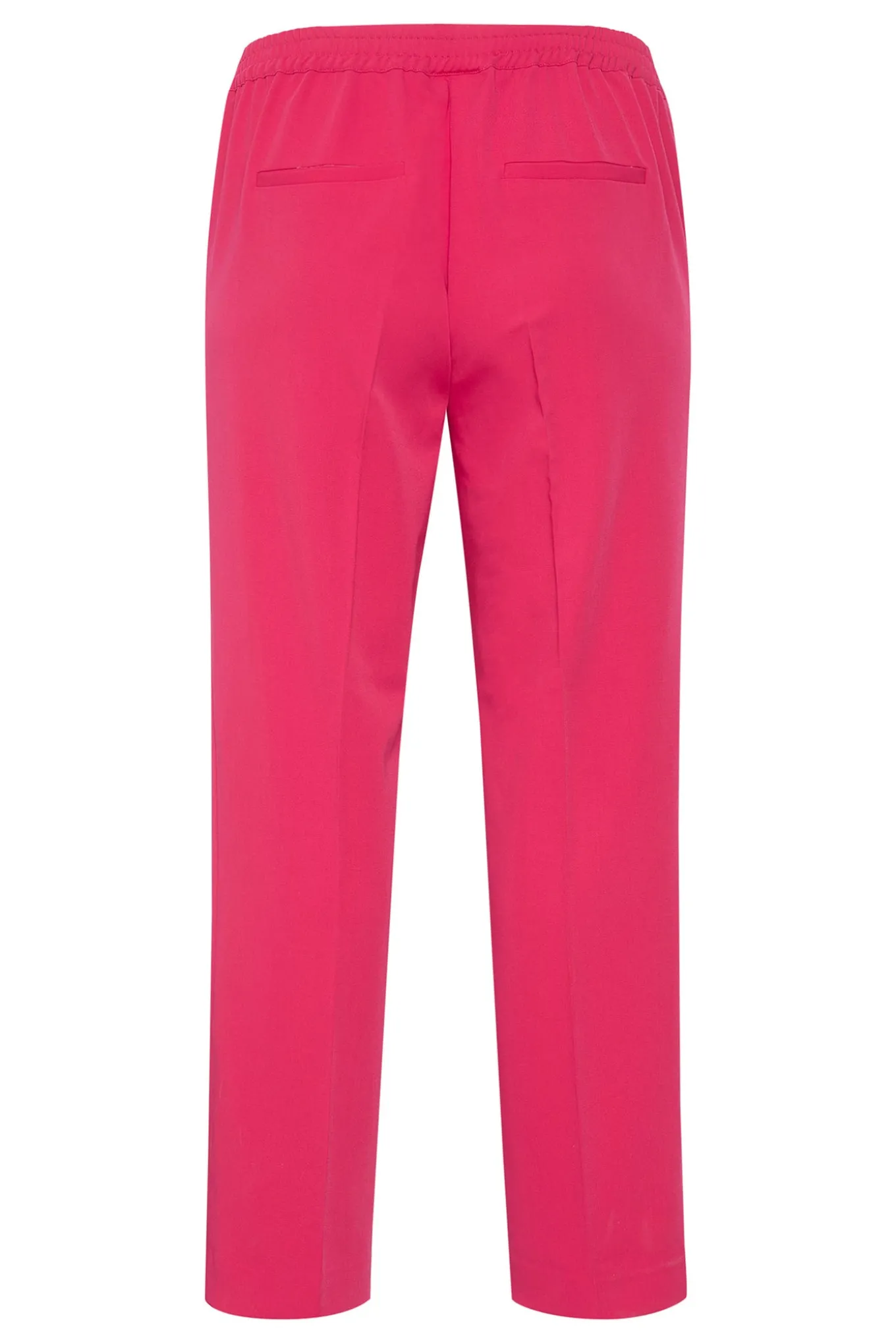 OBS! Fjernlager. Levering kan blive forlænget med 2-3 dage, hvis varen ikke findes i vores butik lige nu.Flotte bukser fra Kaffe Curve med et straight-leg snit, elastikkant i taljen og lommer i siderne. Bukserne har også en lækker kvalitet og fine pressefolder langs fronten.