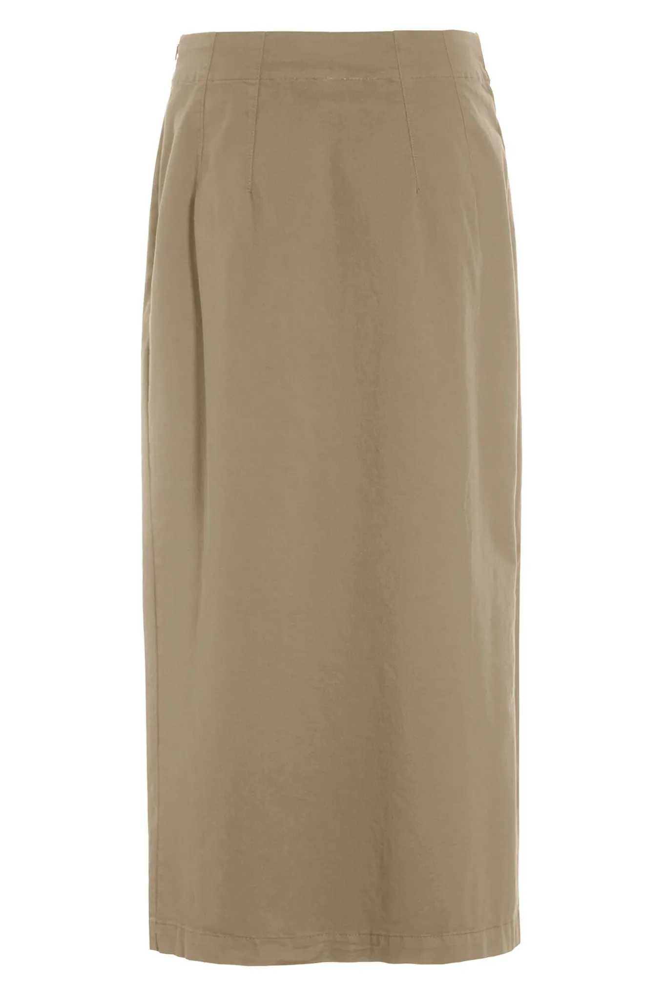 Denne nutmegfarvede nederdel er perfekt til enhver lejlighed. Den er lavet af lækker kvalitet og er tidløs i sin stil. Fra Bitte kai rand.