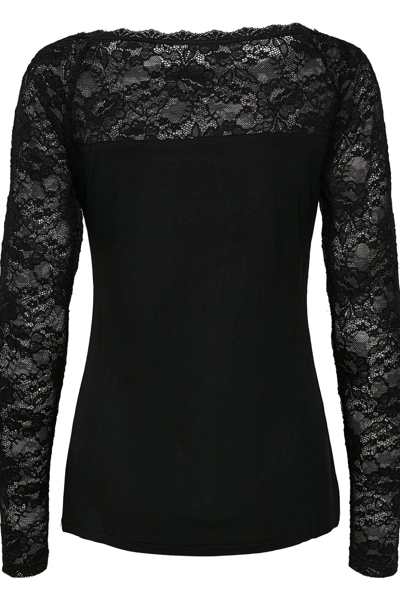 - Smuk langærmet top fra Kaffe med en tætsiddende pasform, bådudskæring i halsen og de smukkeste blonder der giver den et rigtig fint og feminint udtryk.