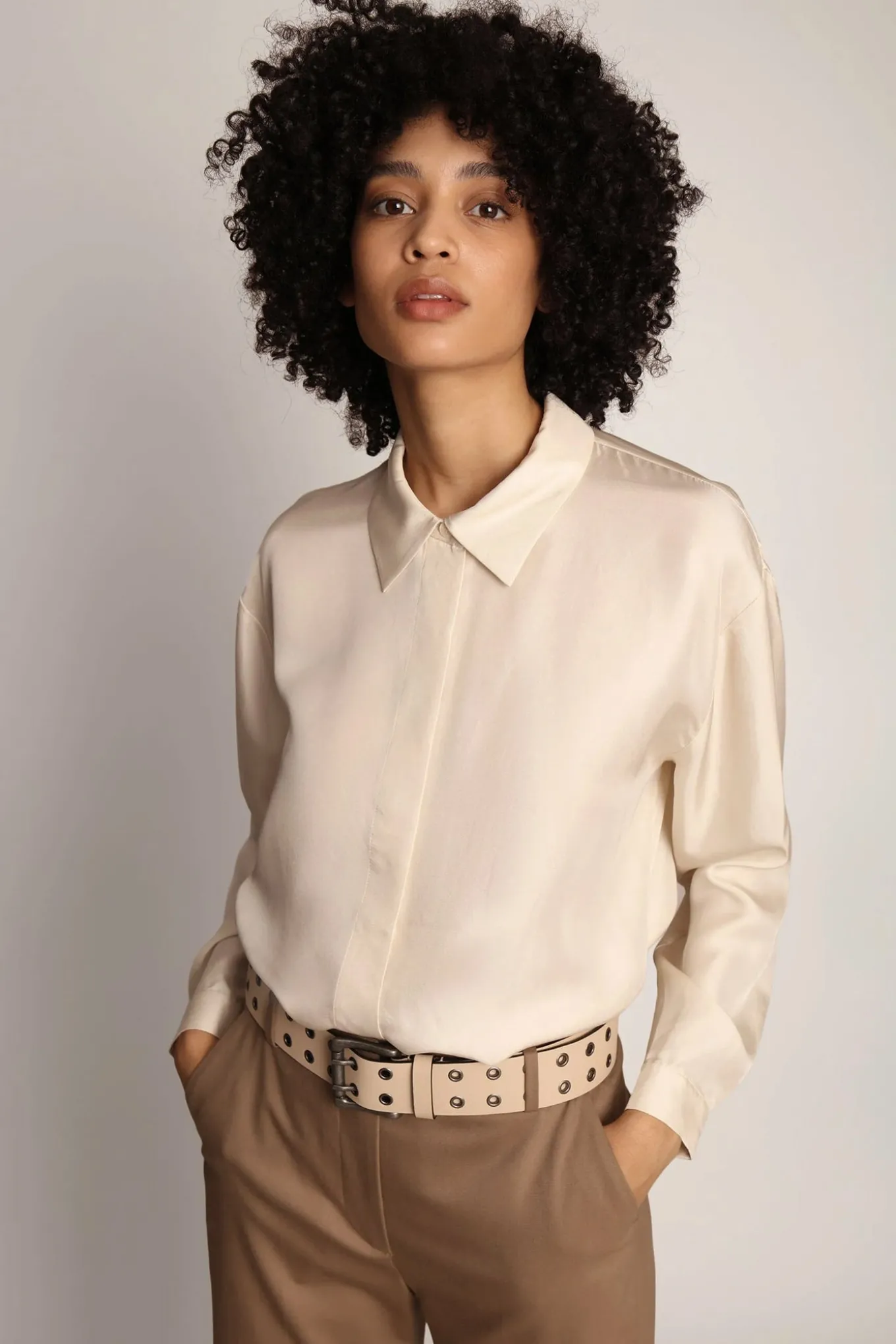 OBS! Fjernlager. Levering kan blive forlænget med 2-3 dage, hvis varen ikke findes i vores butik lige nu.Elegant, klassisk skjorte fra Munthe lavet i 100% silke. Skjorten har lange ærmer med korte manchetter og en almindelig krave.