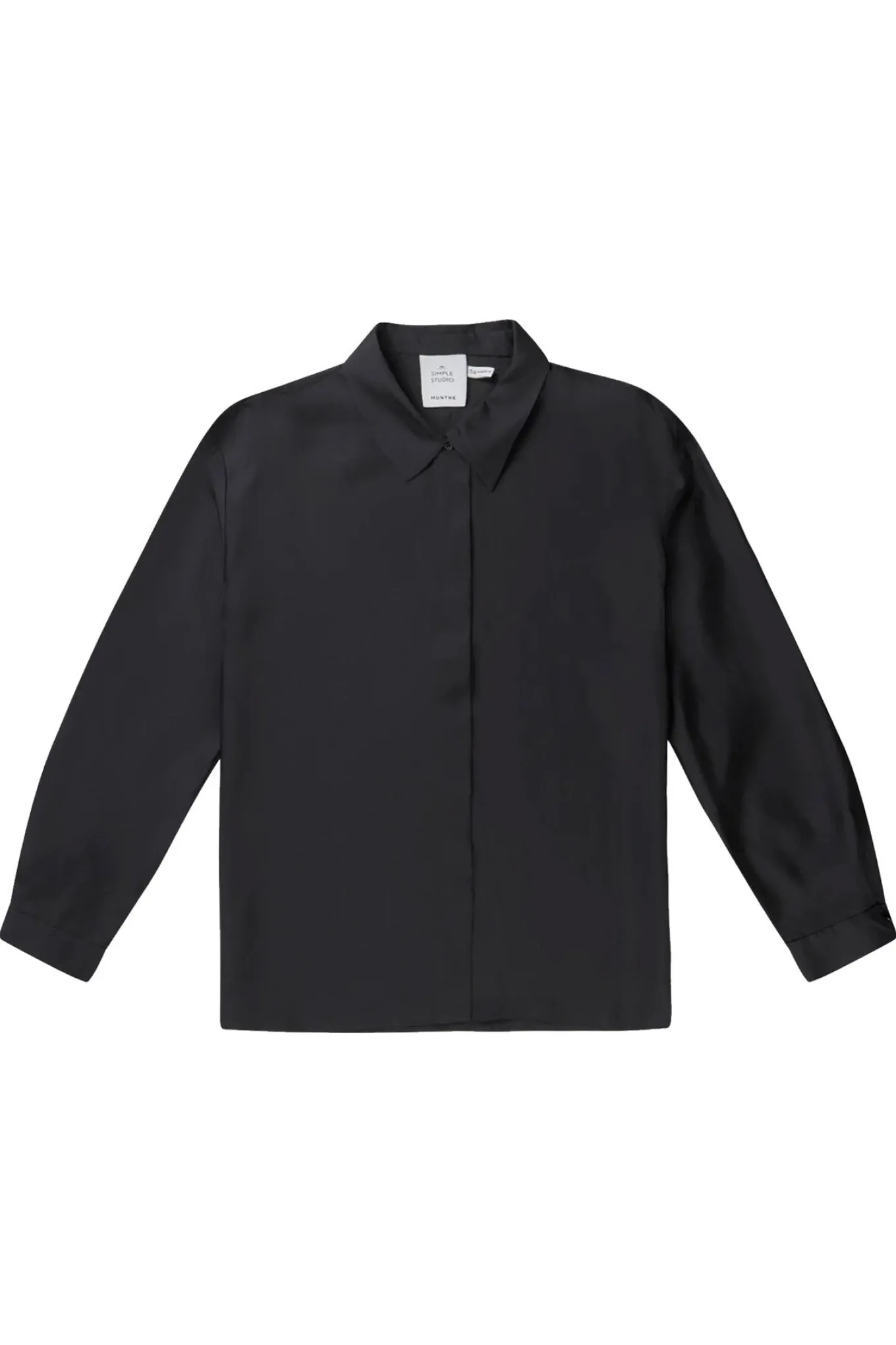 OBS! Fjernlager. Levering kan blive forlænget med 2-3 dage, hvis varen ikke findes i vores butik lige nu.Elegant, klassisk skjorte fra Munthe lavet i 100% silke. Skjorten har lange ærmer med korte manchetter og en almindelig krave.