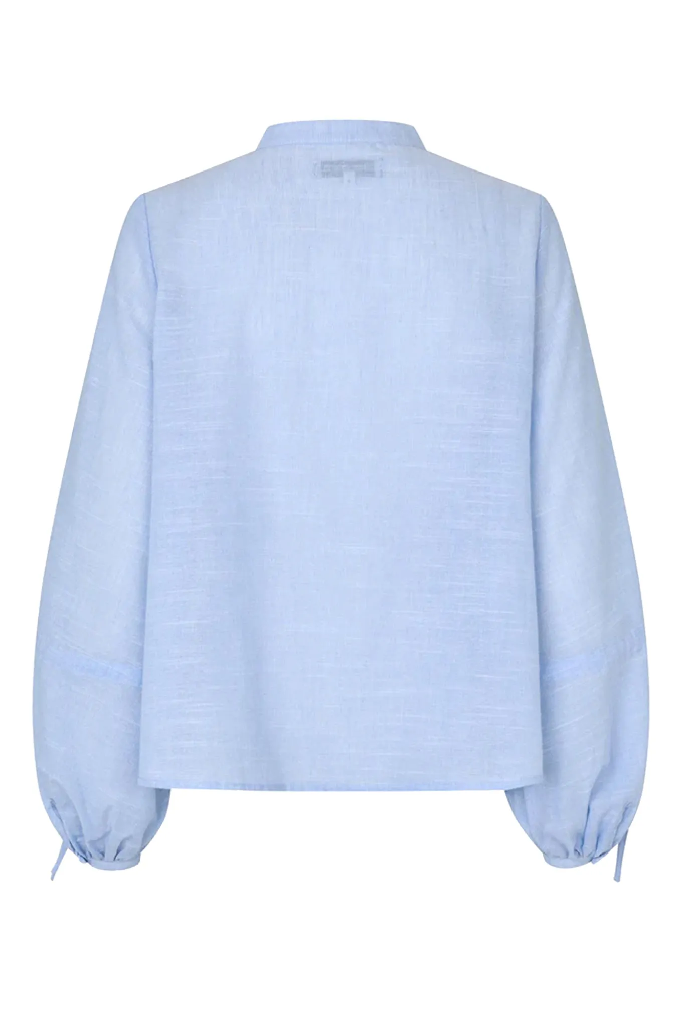 Skab et frisk og afslappet look med denne Lollys Laundry skjorte i lys blå. Den er lavet af blandingen af polyester og bomuld, og er perfekt til enhver lejlighed.