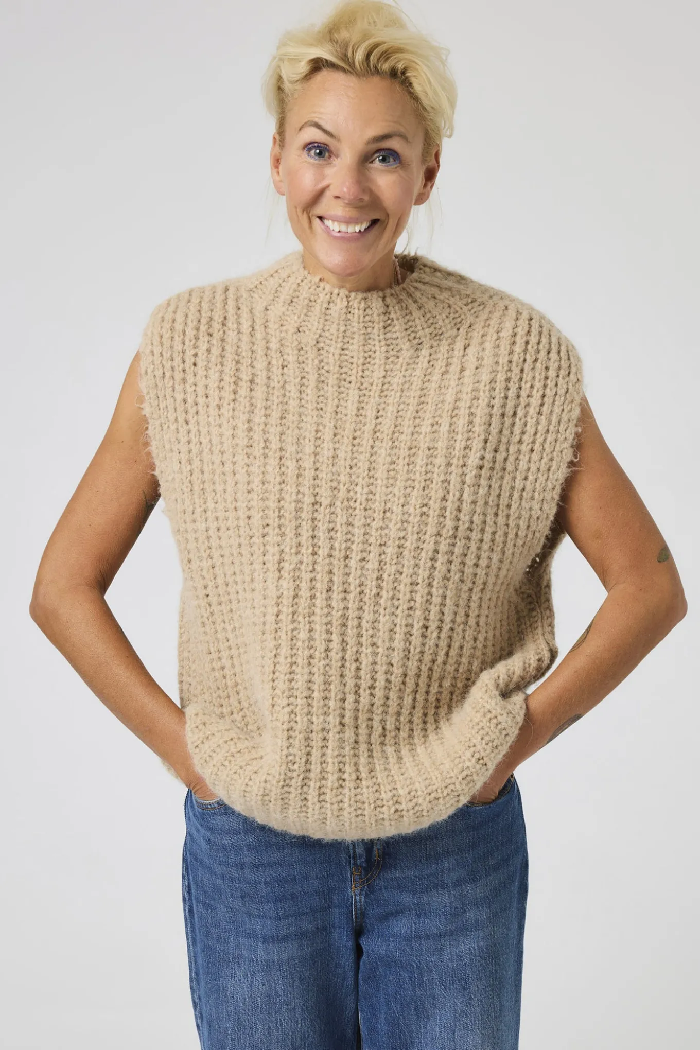 En kaffepause er ikke bare et øjeblik – det er en tilstand. En lille stund, hvor man trækker vejret og mærker roen. Det er præcis den følelse, “Kaffepause”-vesten er skabt til.Strikket i Italien i en luksuriøs blanding af uld, alpaka og bløde fibre, giver den en varm og let fornemmelse mod huden. De rolige, neutrale nuancer understreger vestens naturlige udtryk og gør den nem at kombinere med alt fra skjorter til kjoler.“Kaffepause” er en hyldest til de små pauser i en travl hverdag – dem, Lene Beier selv værdsætter højt. Et design, der indfanger essensen af kollektionen: varme, nærvær og kvalitet, du kan mærke