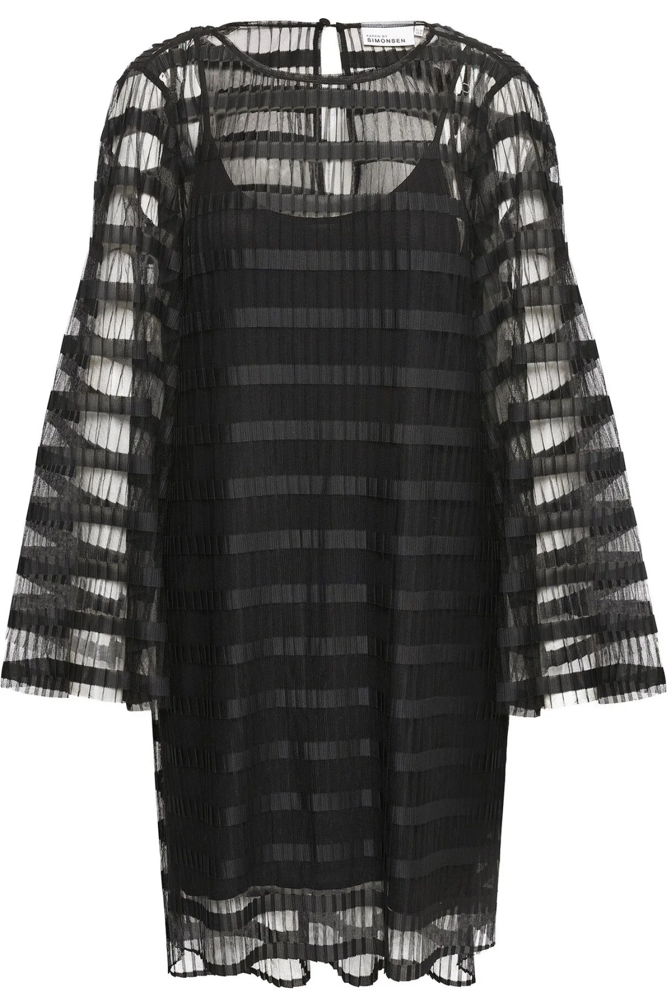 OBS! Fjernlager. Levering kan blive forlænget med 2-3 dage, hvis varen ikke findes i vores butik lige nu.Super flot kjole fra Karen By Simonsen med lange brede ærmer, rund hals og en smuk kvalitet.