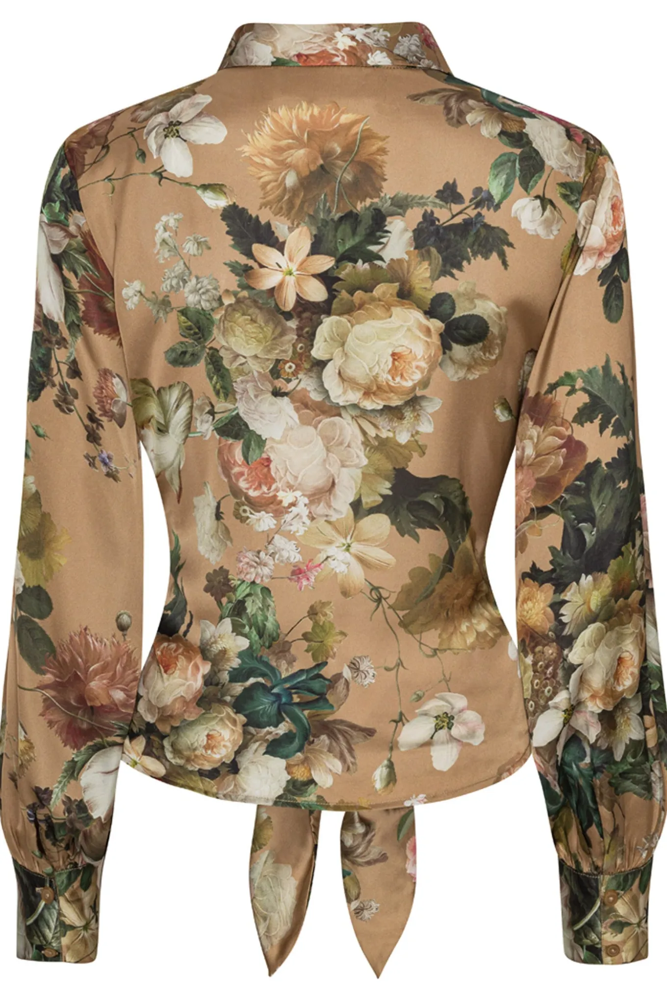 - Smuk skjortebluse fra Karmamia med lange ærmer, en lille krave i halsen og en flot knude detalje i fronten.Blusen lukkes også med et skjult knappanel og har en dejlig blød kvalitet.