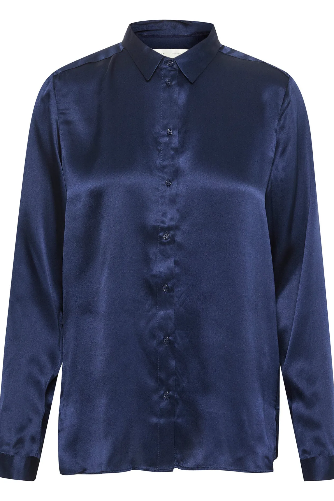 OBS! Fjernlager. Levering kan blive forlænget med 2-3 dage, hvis varen ikke findes i vores butik lige nu.Elegant silkeskjorte fra InWear med lange ærmer, en lille krave i halsen og knaplukning langs fronten.