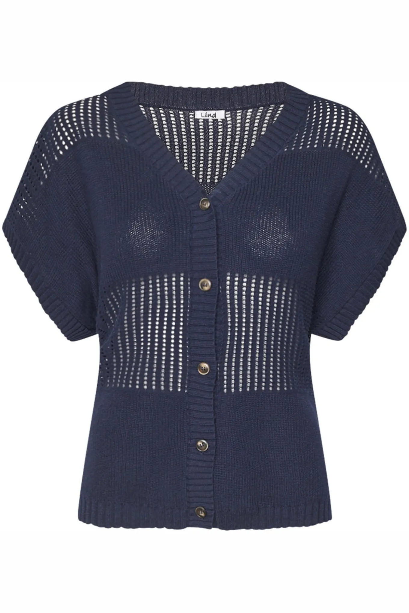 Opdater dit garderobe med denne alsidige cardigan fra LIND. Den er lavet af 100% bomuld i en flot navy blå farve, perfekt til enhver lejlighed.