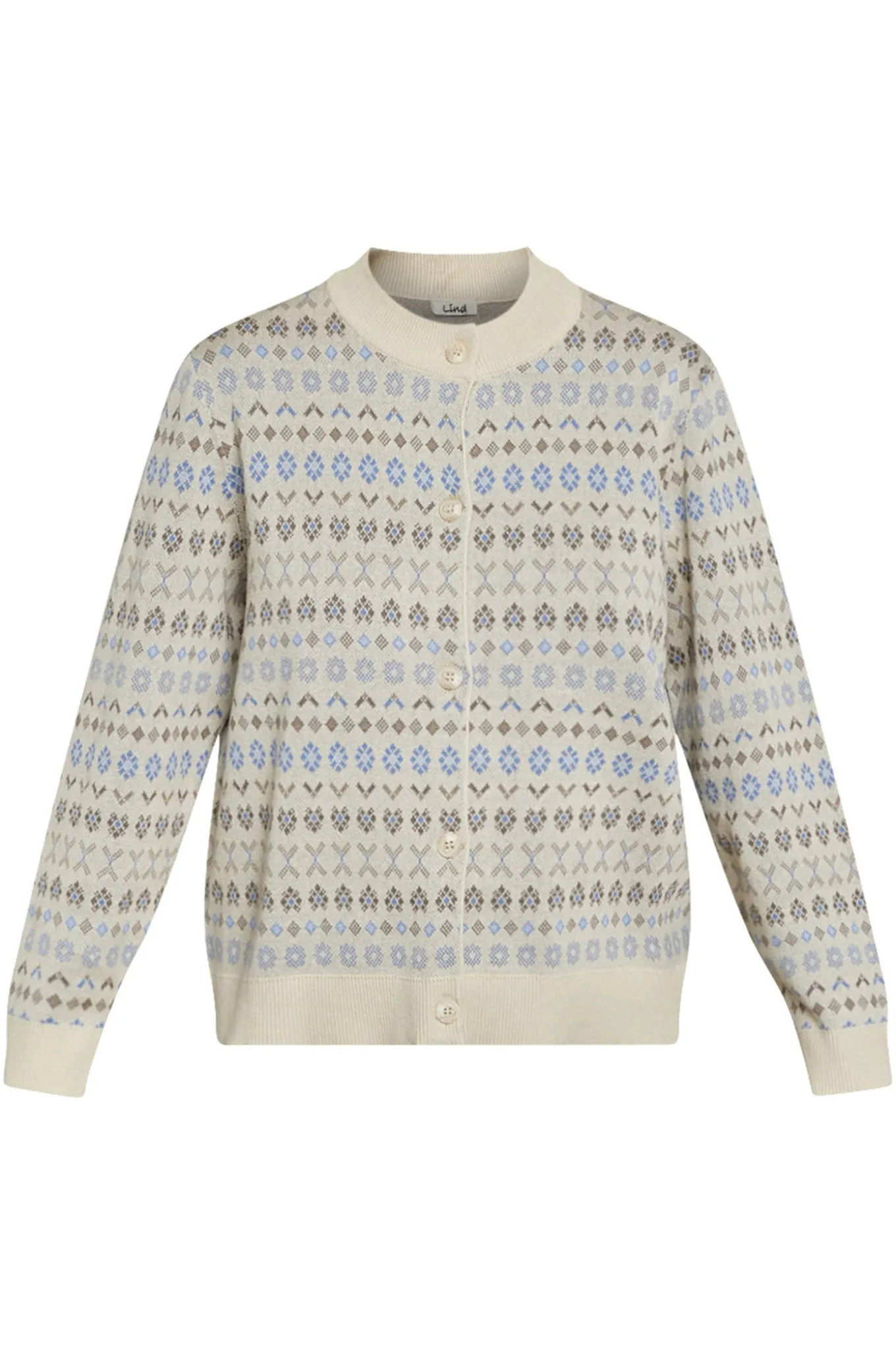 Oplev stil og komfort med denne 100% bomulds cardigan i en smuk skyblå farve fra LIND. Perfekt til enhver lejlighed og altid tidløs.