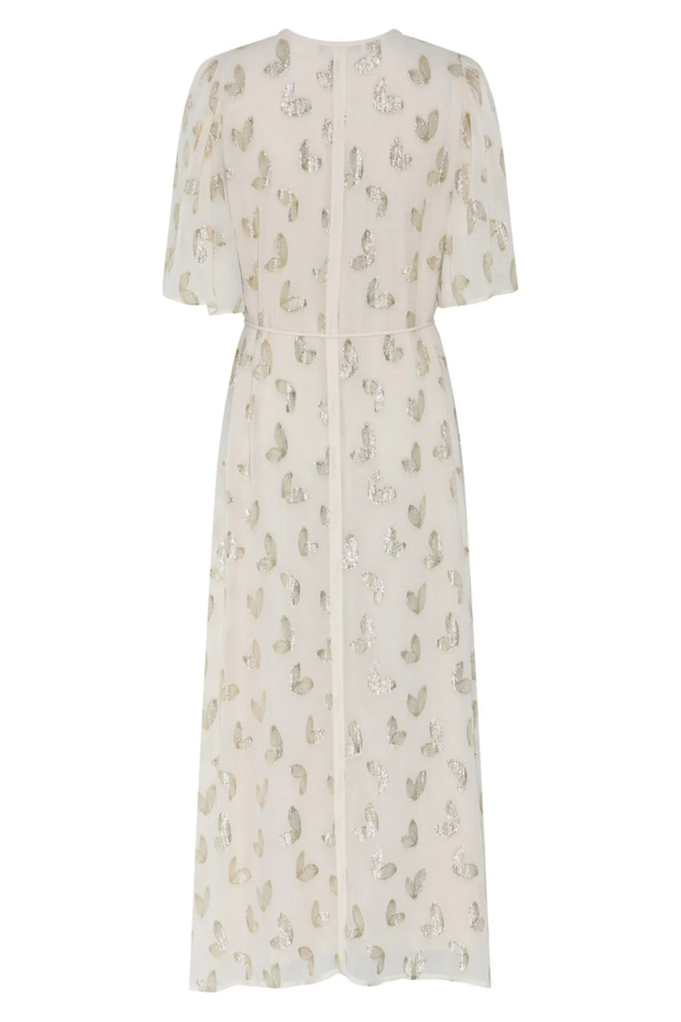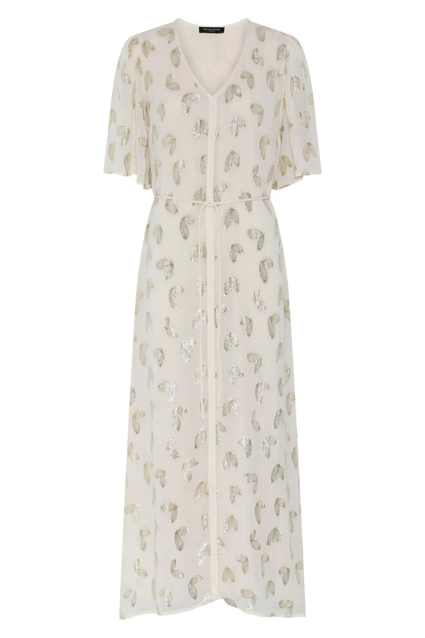 Få et elegant og sofistikeret look med denne smukke kjole fra Bruuns Bazaar Women. Kjolen er i farven Moonbeam og er lavet af 70% viskose og 30% metaliseret fiber, med et for af 100% viskose. Perfekt til enhver anledning.