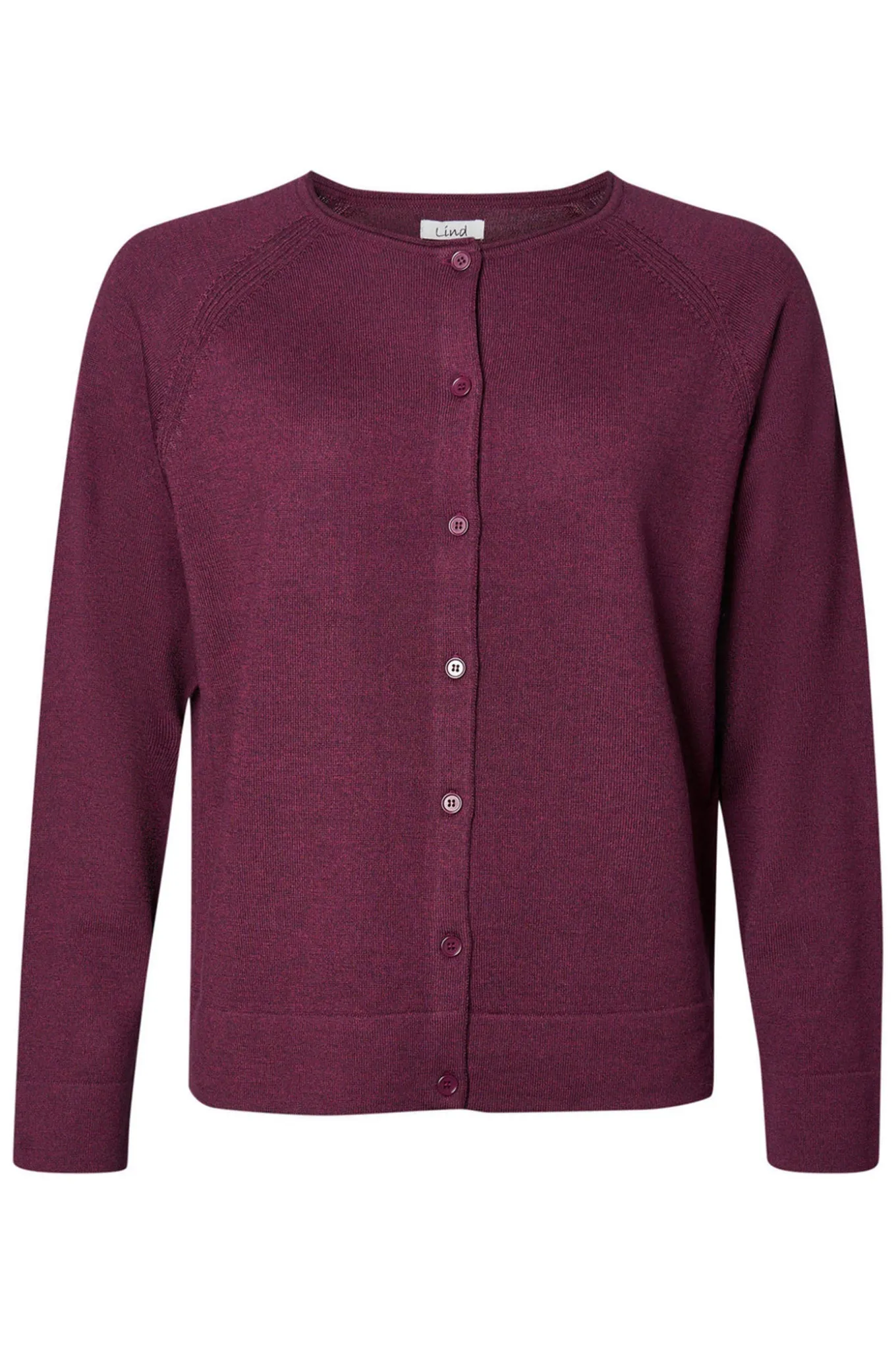Få et elegant og varmt udtryk med denne cardigan i granat rød melange fra LIND. Fremstillet af 100% merinould, perfekt til enhver anledning.