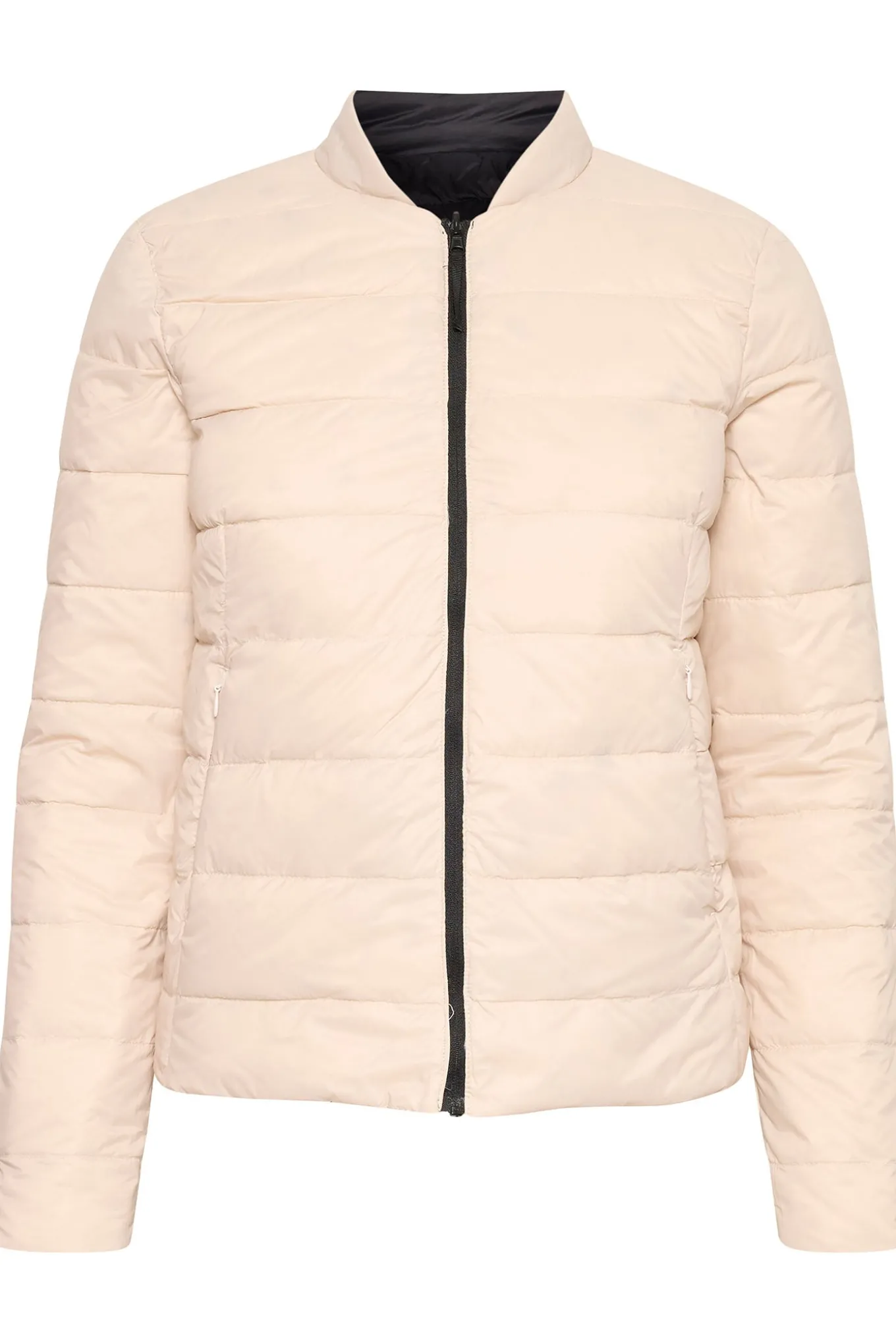 OBS! Fjernlager. Levering kan blive forlænget med 2-3 dage, hvis varen ikke findes i vores butik lige nu.Smarte vendbar jakke fra InWear med lange ærmer, en lille kant i halsen og et fint quiltet udtryk.Jakken har også lommer i siderne og lynlåslukning langs fronten.