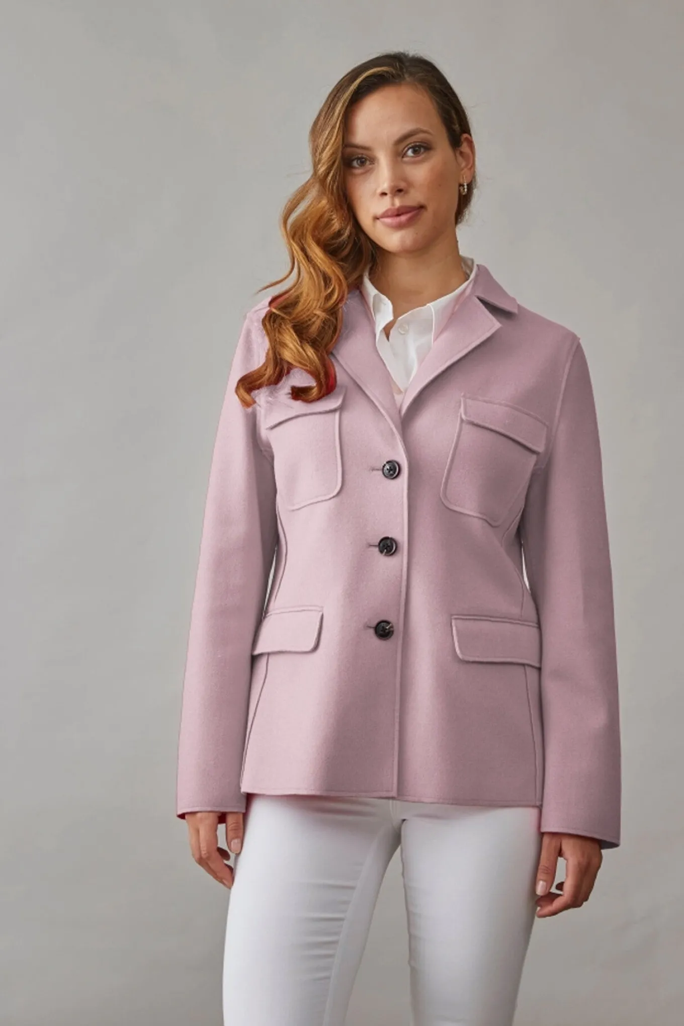 OBS! Fjernlager. Levering kan blive forlænget med 2-3 dage, hvis varen ikke findes i vores butik lige nu.Elegant og feminin blazer jakke fra Junge. Jakken er konstrueret i et blødt materiale, har lommer og knapper i smukt horn-look.