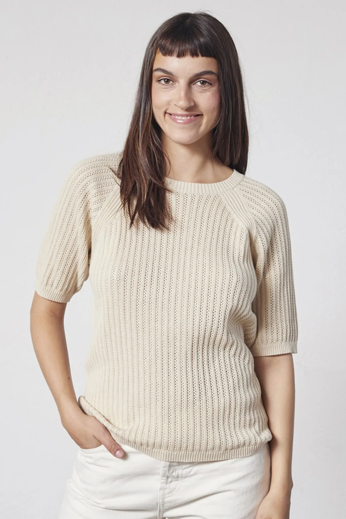 Striktrøjen fra LIND er perfekt til en afslappet og tidløs stil. Den er lavet af 100% bomuld i en flot off white farve.