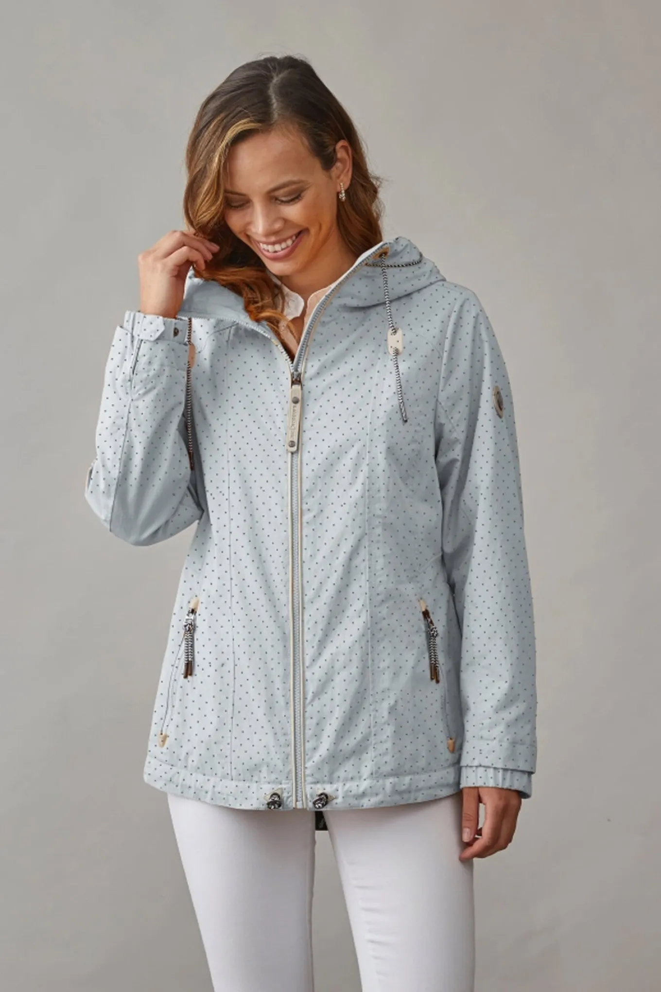 OBS! Fjernlager. Levering kan blive forlænget med 2-3 dage, hvis varen ikke findes i vores butik lige nu.Super flot jakke fra Junge med justerbar hætte, praktiske lommer og skønne detaljer.Jakken har også en dejlig kvalitet og lukkes langs fronten med lynlås.