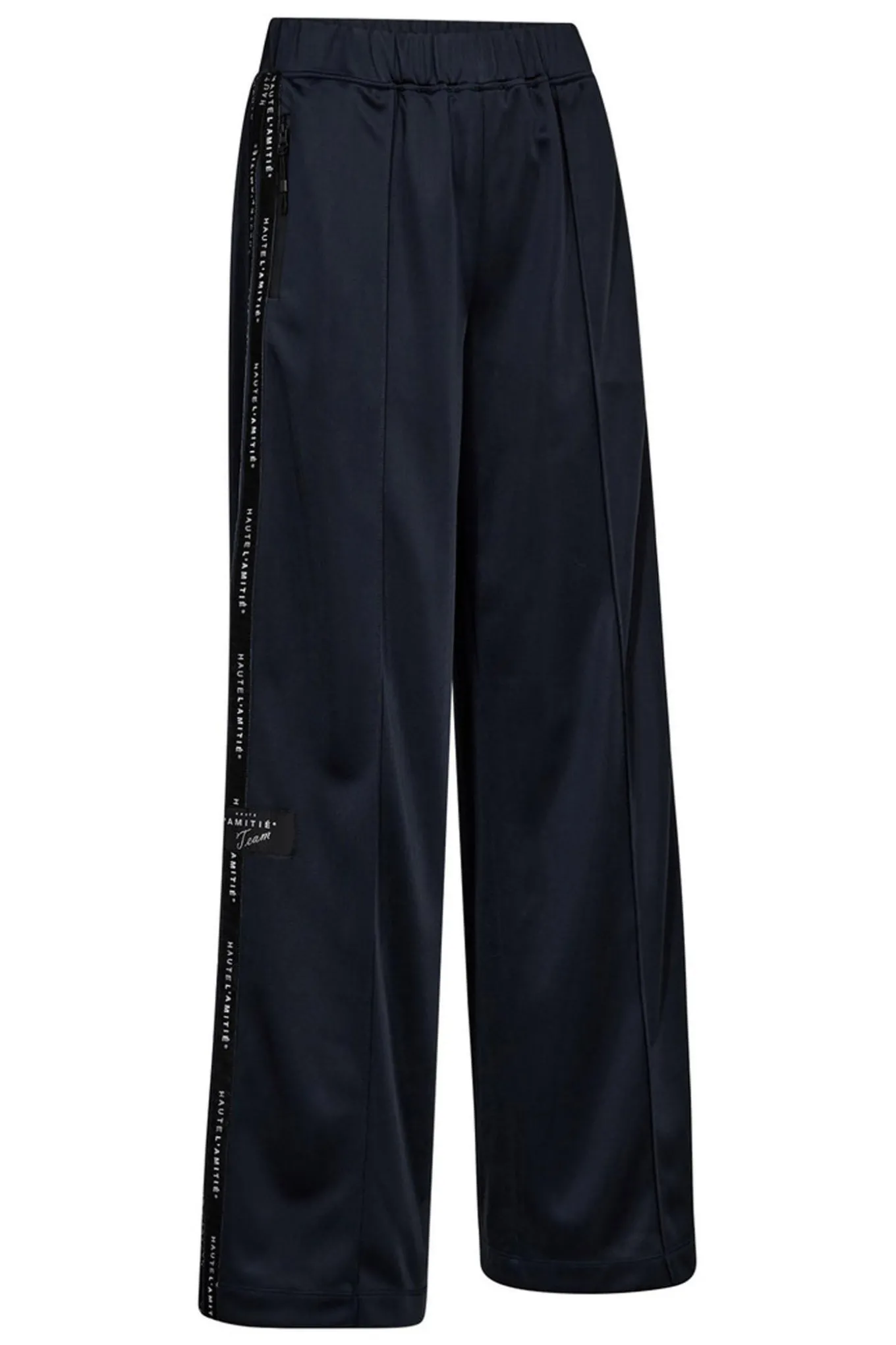 OBS! Fjernlager. Levering kan blive forlænget med 2-3 dage, hvis varen ikke findes i vores butik lige nu.Super cool bukser fra Haute L’Amitié med en bred elastikkant i taljen, vidde i benene og smarte detaljer langs siden der giver dem et sporty udtryk.
