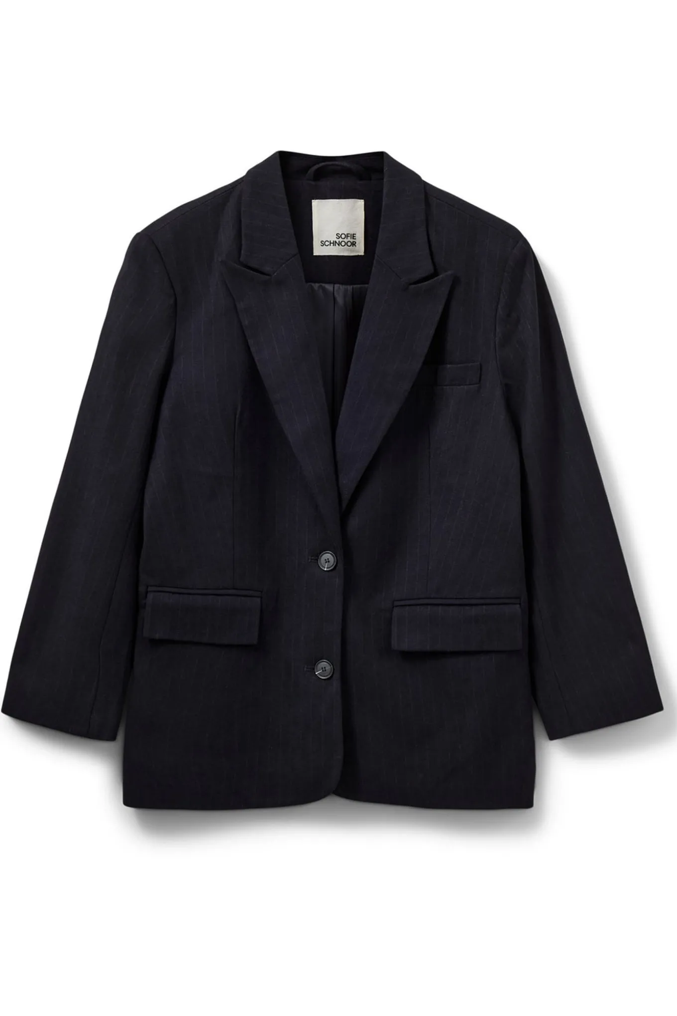 Lækker blazer fra Sofie Schnoor i klassisk navy stribet design. Fremstillet af polyester, rayon og elastisk materiale, der sikrer både stil og komfort. Perfekt til både hverdag og fest.