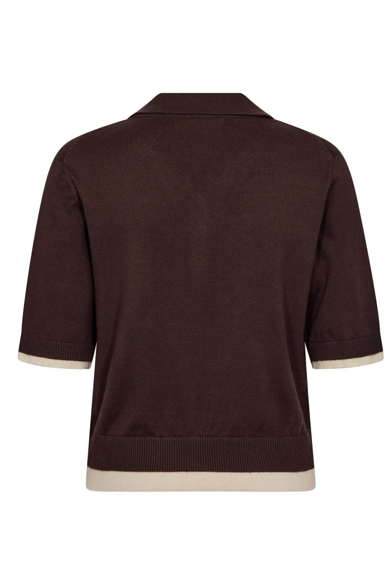 Få et elegant og tidløst look med denne striktrøje i 100% viskose i farven 145-Dark Brown fra CO’COUTURE. Perfekt til både hverdag og fest.