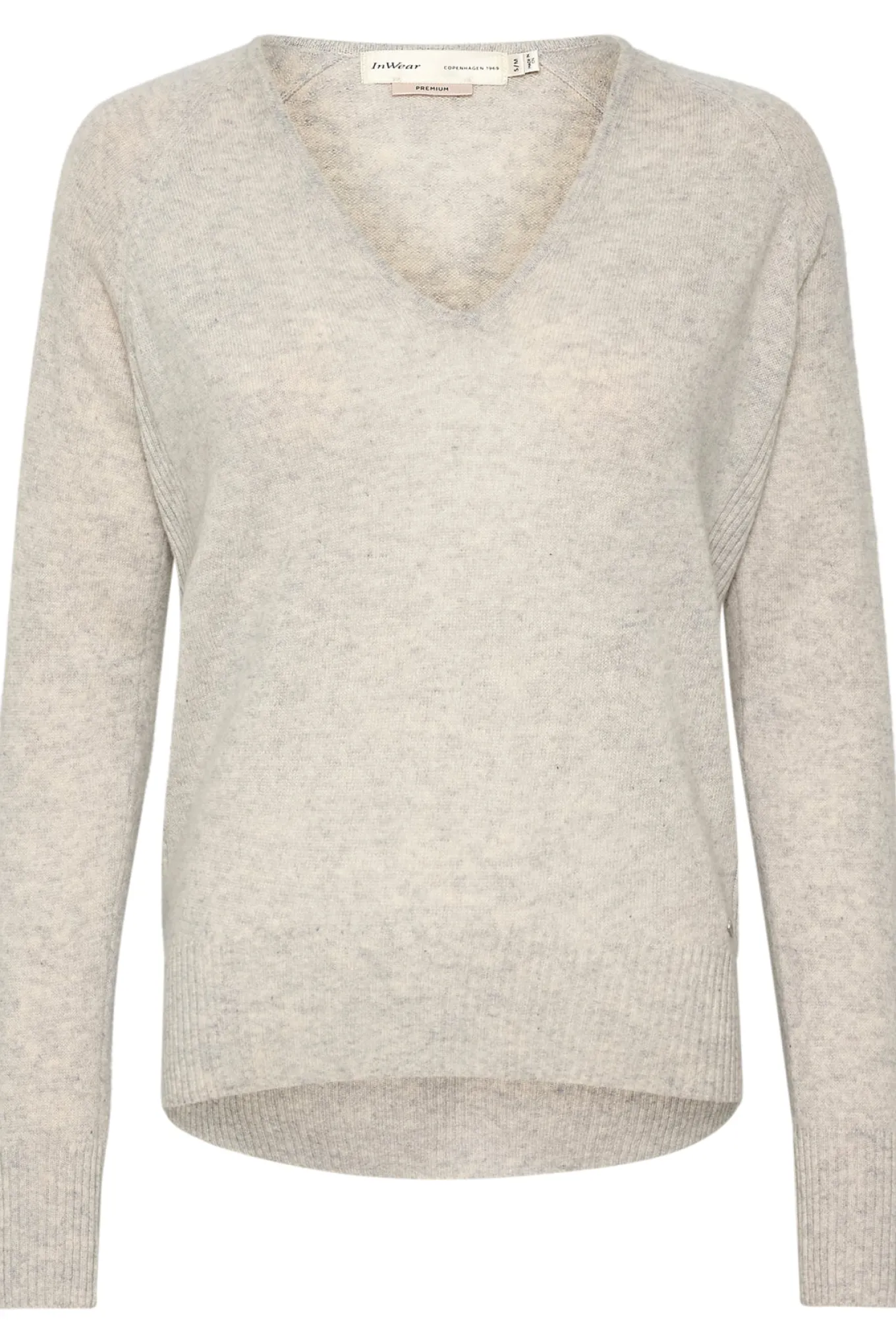 Bliv klædt på til efteråret med denne lækre striktrøje fra INWEAR. I den smukke farve New Light Grey Melange og med 100% kashmir, er den både tidløs og komfortabel.