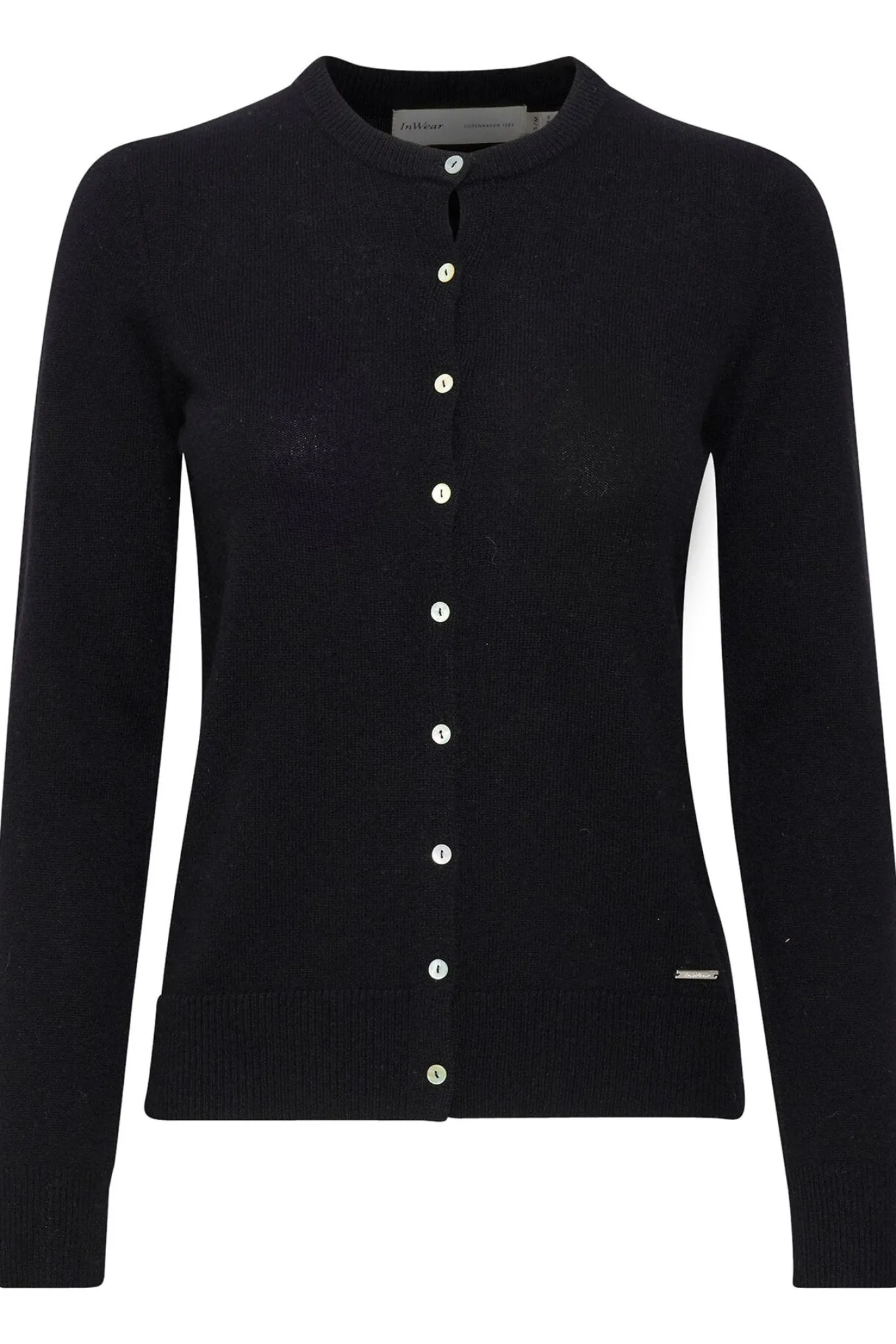 OBS! Fjernlager. Levering kan blive forlænget med 2-3 dage, hvis varen ikke findes i vores butik lige nu.Smart cardigan fra InWear med lange ærmer, rund hals og knaplukning langs fronten.