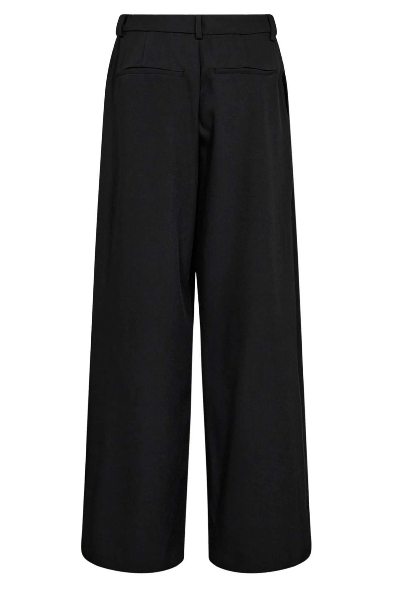 OBS! Fjernlager. Levering kan blive forlænget med 2-3 dage, hvis varen ikke findes i vores butik lige nu.Smarte bukser fra Co’couture med vidde i benene, en bred elastikkant i taljen og super cool detaljer på fronten.Bukserne har også læg, vidde i benene og en dejlig blød kvalitet.