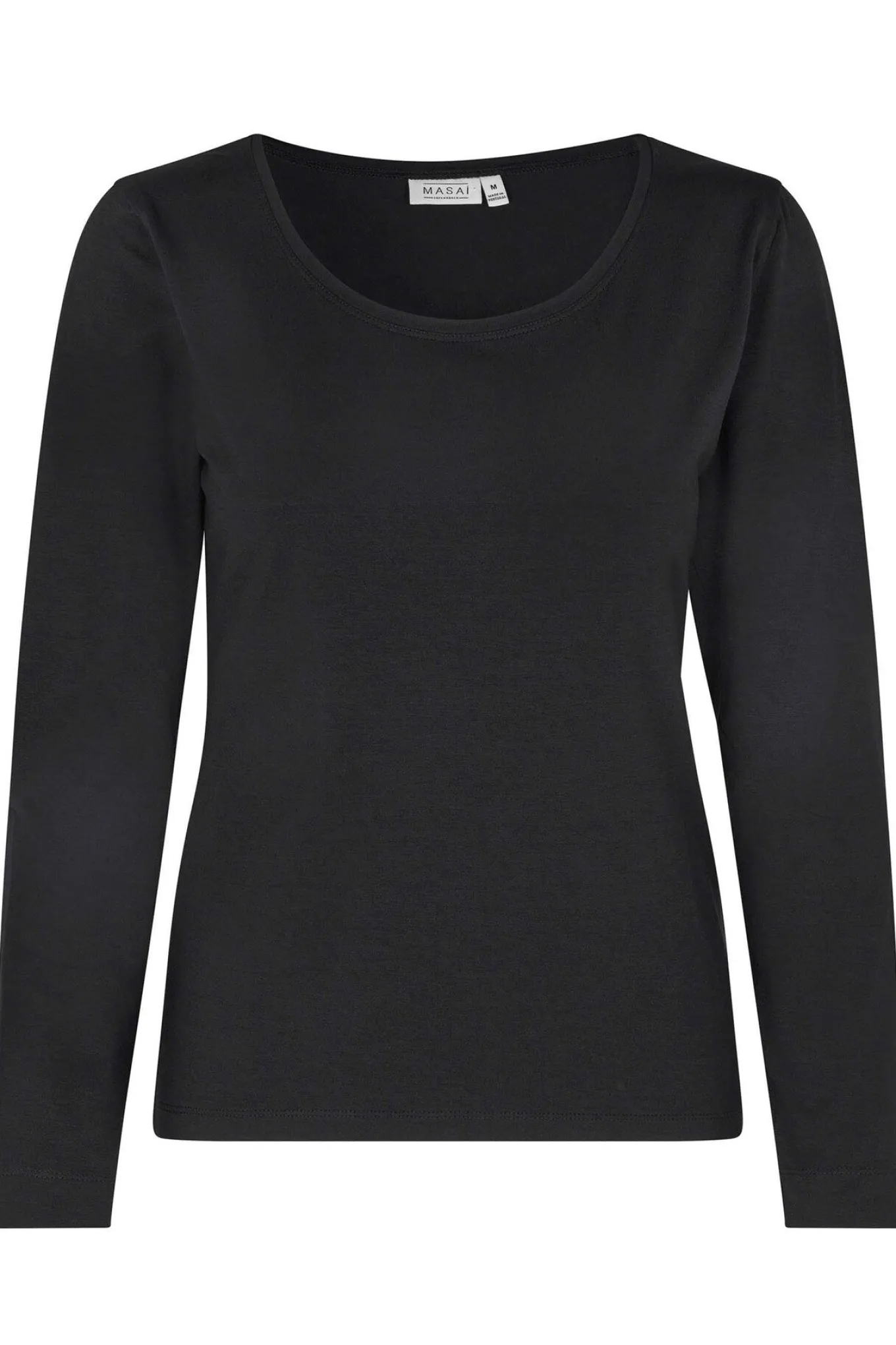 Skab et elegant og tidløst look med denne sorte top fra Masai. Lavet af et blødt og behageligt materiale, er den perfekt til enhver lejlighed.