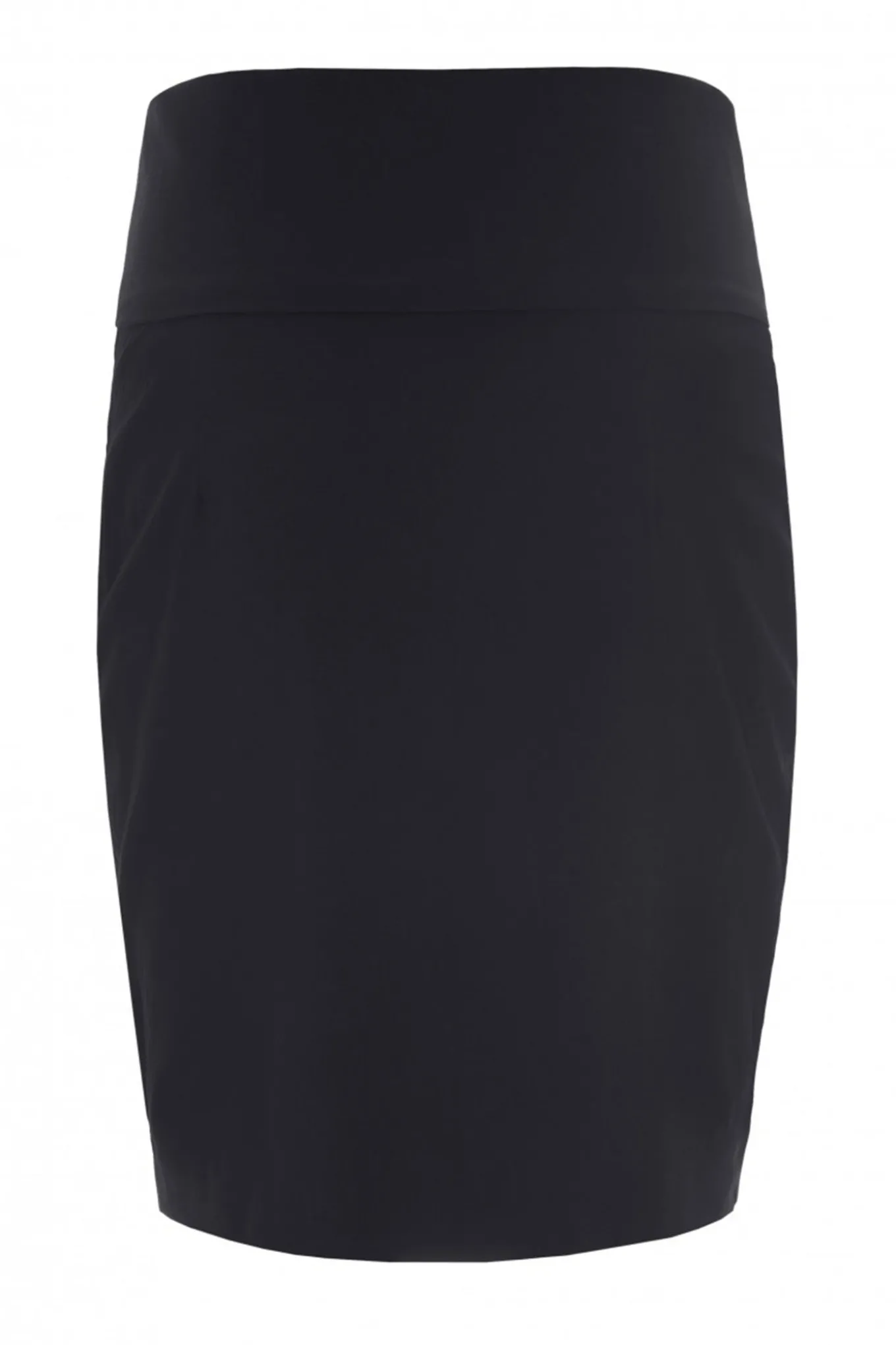 Basisnederdel med klædelig og tætsiddende pasform. Der er stretch i nederdelen, som sikrer en god bevægelighed. Nederdelens brede linning kan trækkes op over maven eller foldes ned for en almindelig taljehøjde. Denne effekt gør den meget behagelig.