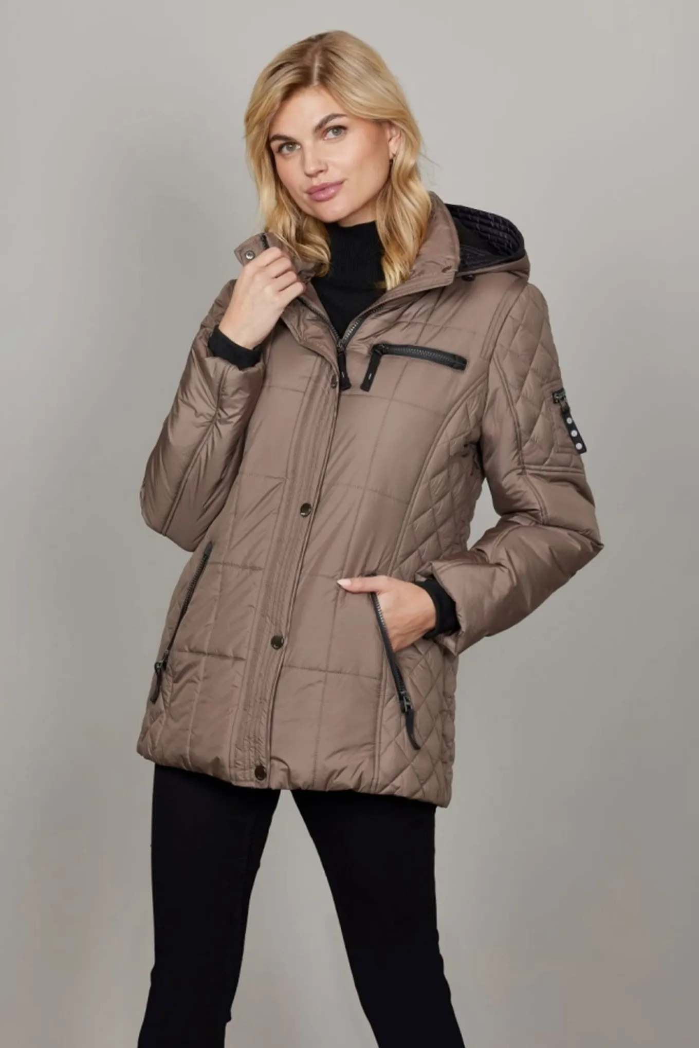 Den quiltede Majbrit jakke blander raffineret stil med praktiske, vejrklare funktioner.