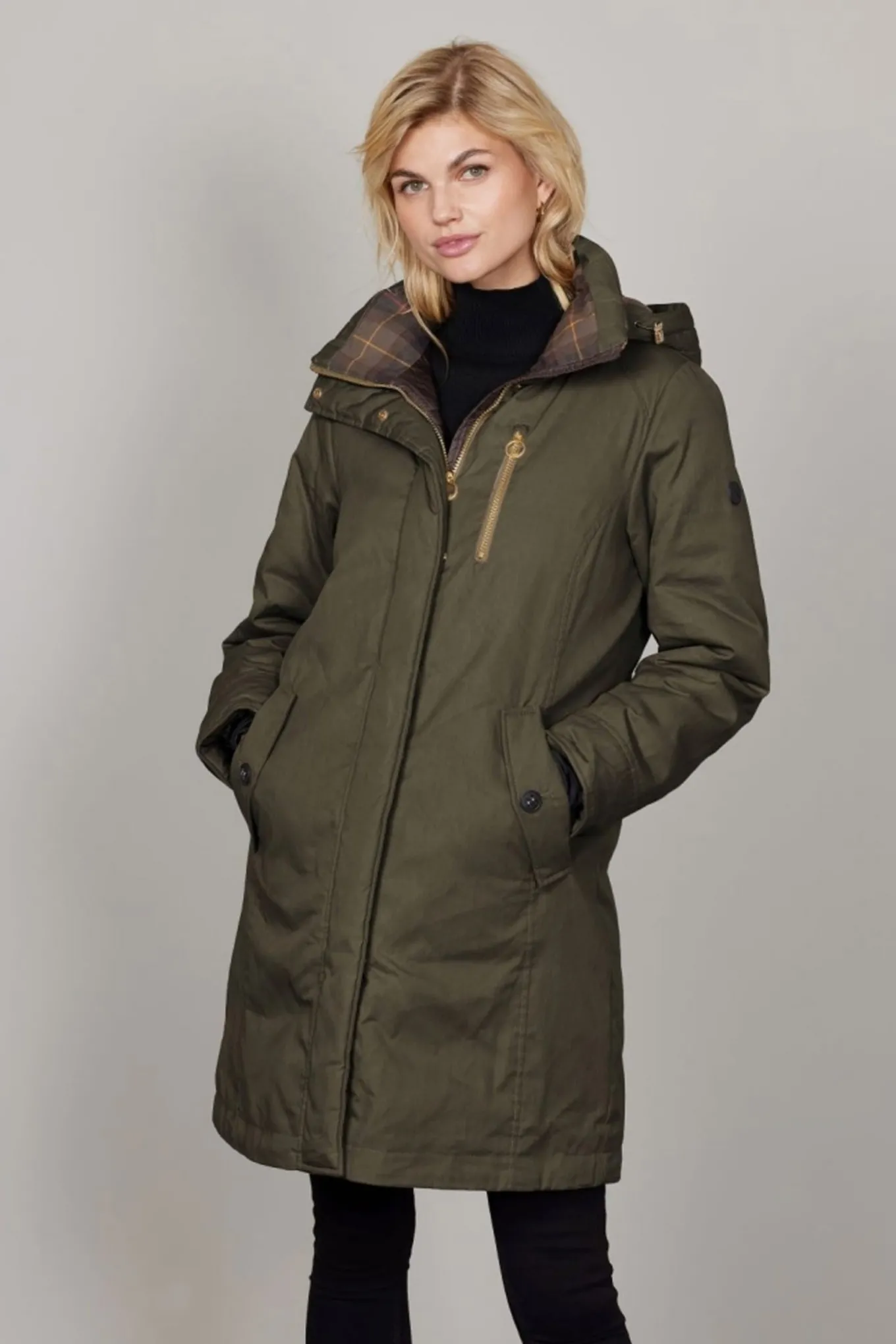 Stilfuld og praktisk jakke fra Junge lavet af en slidstærk bomuldsblanding med en voksbelægning, der giver vandafvisende og en let robust, mat finish. Malou