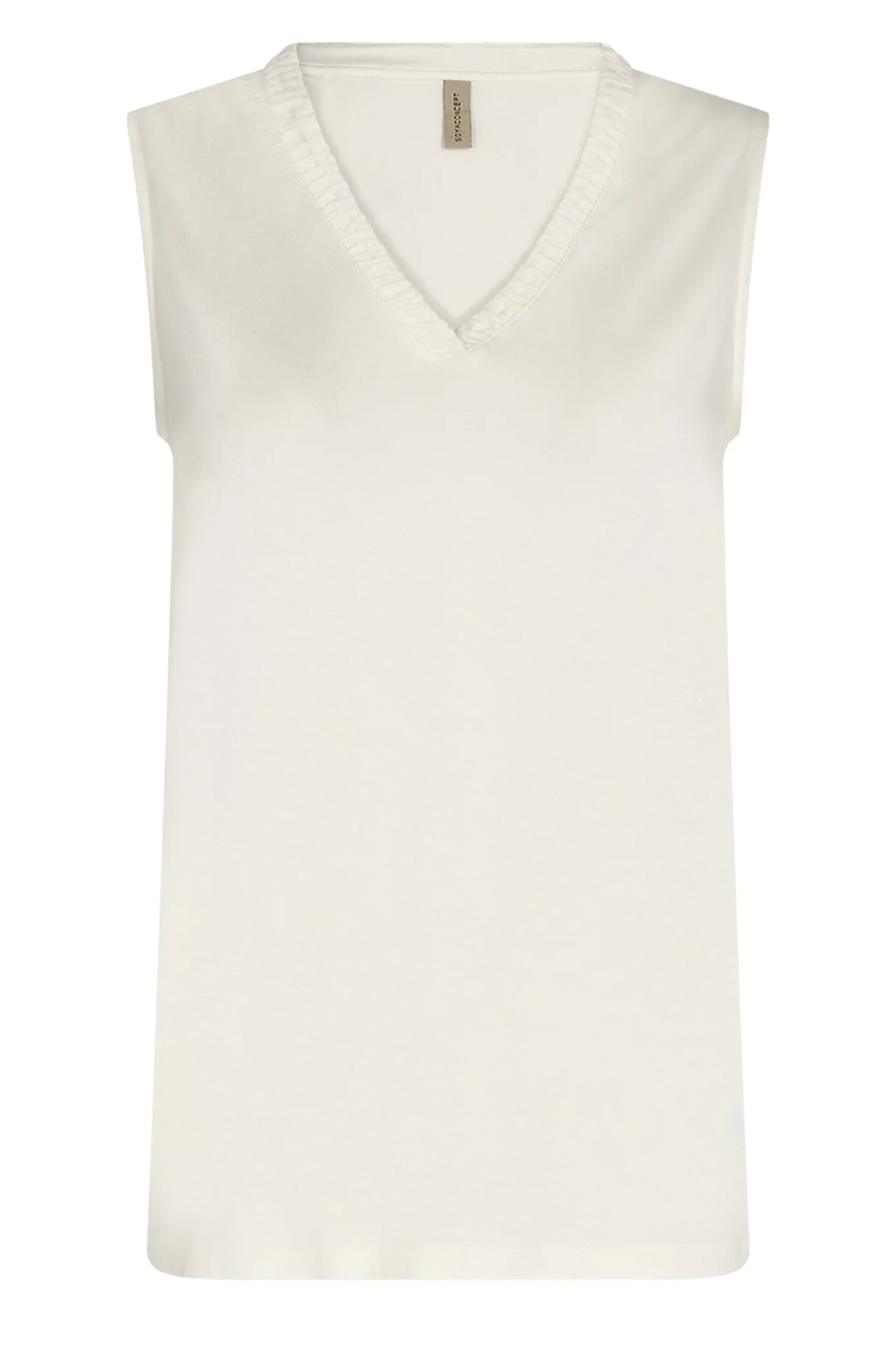 Fin top fra Soyaconcept med v-udskæring i halsen og små flæsekanter.
