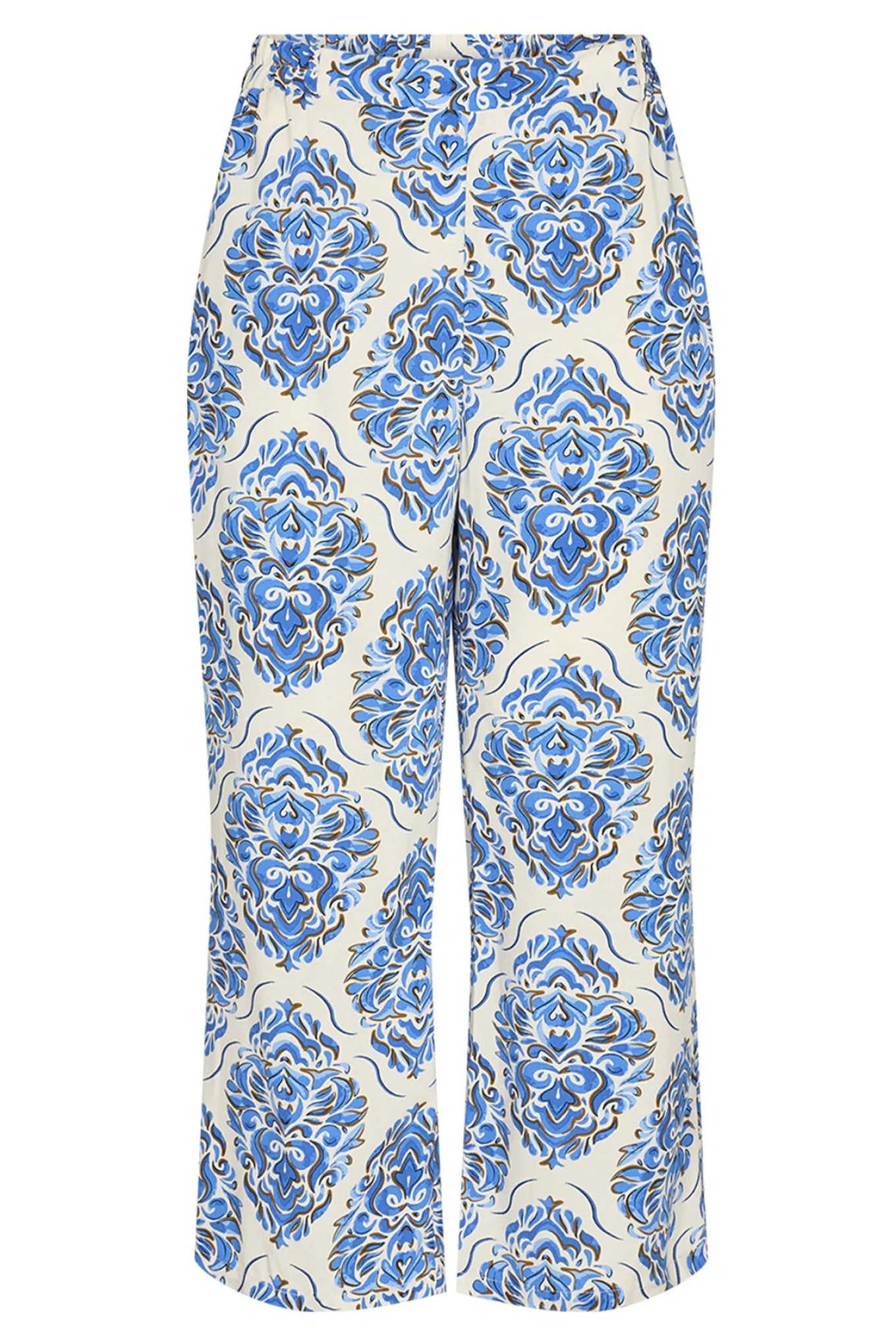 Lækre bukser fra Soyaconcept med en bred elastikkant i taljen, en behagelig afslappet silhuet og et smart print. Bukserne har også lommer i siderne og en dejlig let kvalitet.