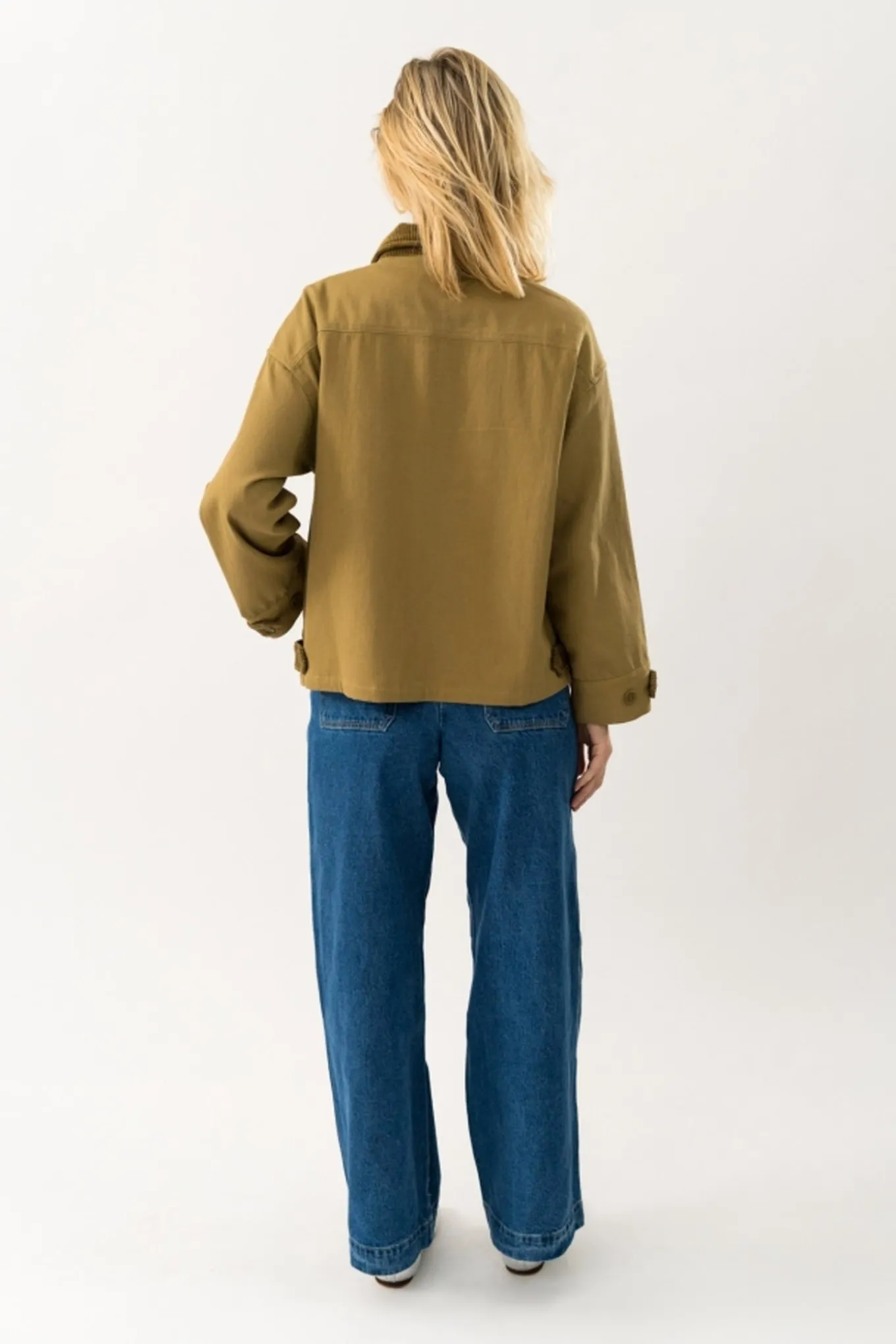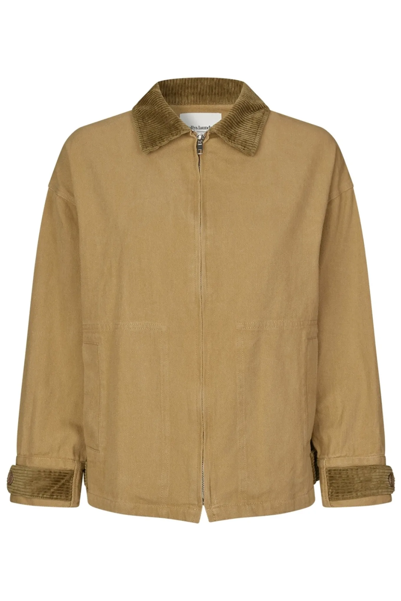 OBS! Fjernlager. Levering kan blive forlænget med 2-3 dage, hvis varen ikke findes i vores butik lige nu.Klassisk og cool jakke fra Lollys Laundry med lange ærmer, elegante corduroy detaljer omkring manchetterne og krave i halsen, store lommer i siderne og en diskret lynlås langs fronten.