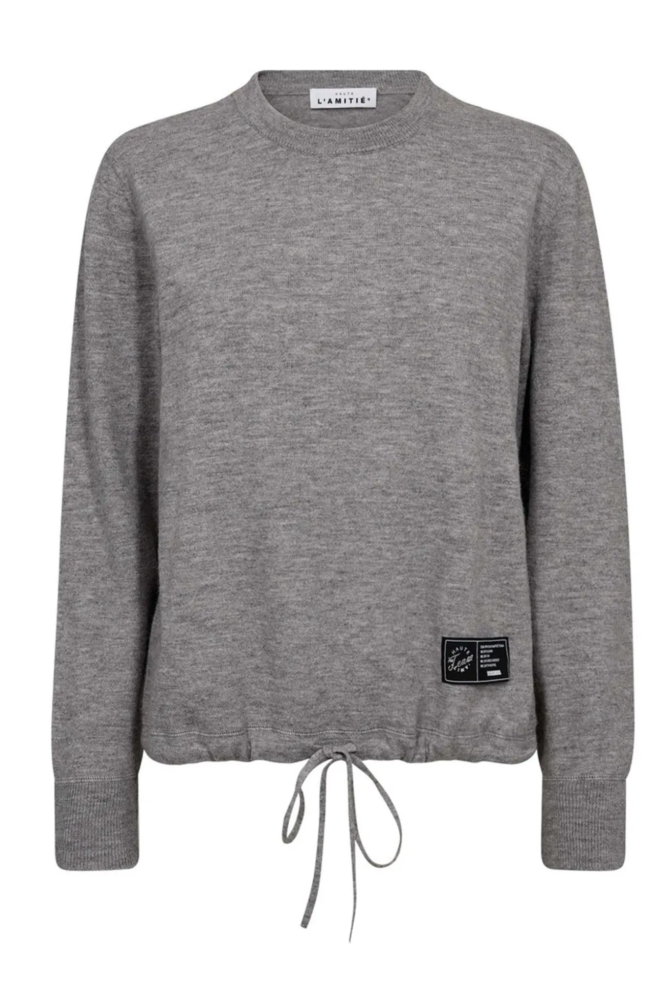 Denne skønne sweat knit fra Haute L’Amitie er perfekt til enhver anledning. Den grå melangé farve passer til alt og det bløde materiale af acryl og polyamid gør den både varm og behagelig. En must-have i enhver garderobe.