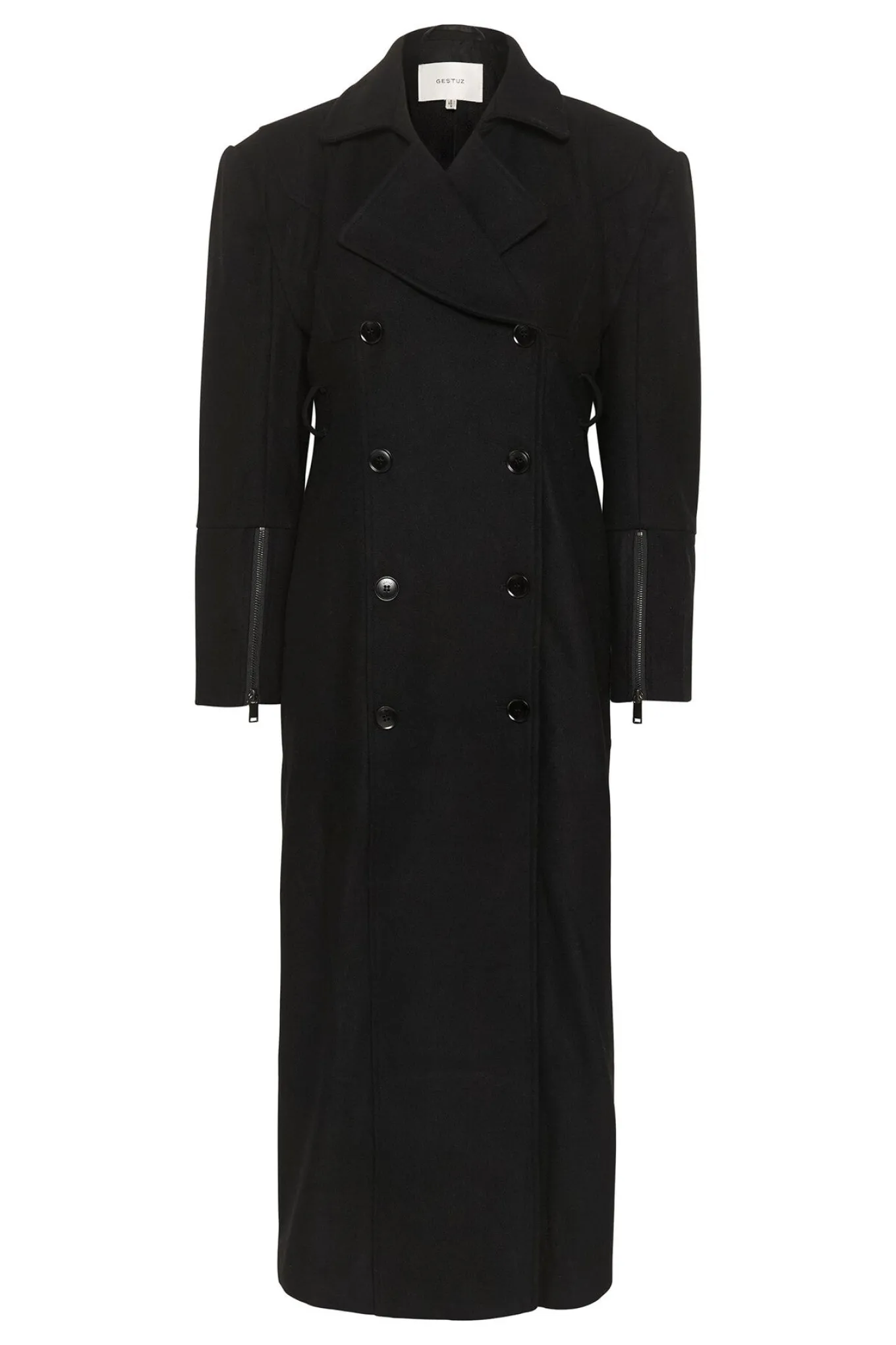 OBS! Fjernlager. Levering kan blive forlænget med 2-3 dage, hvis varen ikke findes i vores butik lige nu.Super cool jakke fra Gestuz med lange ærmer, krave i halsen og smarte detaljer. Jakken har også et flot snit, knaplukning og lynlåse i siderne. Den kommer også med et bredt bælte til taljen.