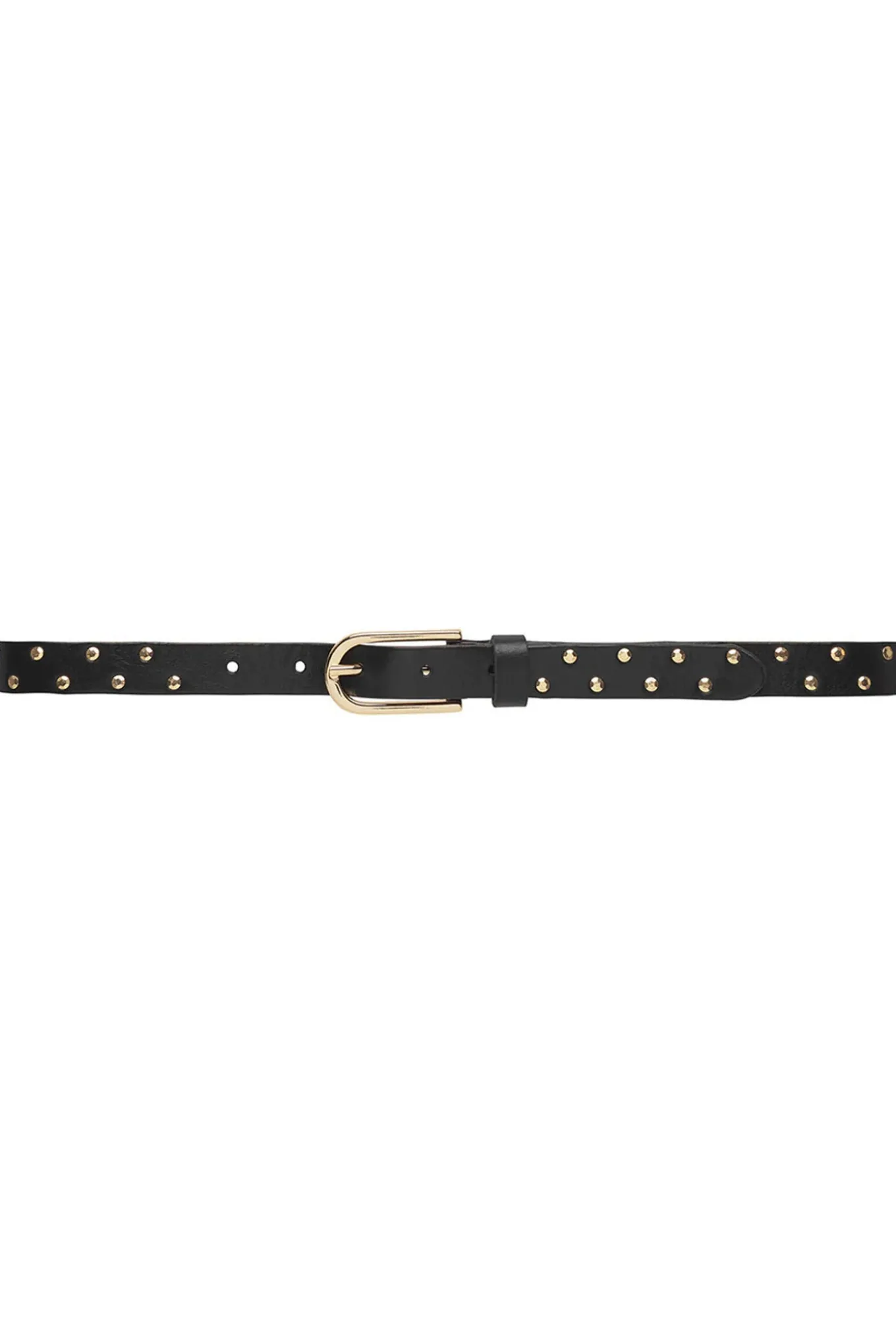OBS! Fjernlager. Levering kan blive forlænget med 2-3 dage, hvis varen ikke findes i vores butik lige nu.Fremhæv din talje med dette elegante skindbælte lavet i 100% skind, delikat dekoreret med små feminine nitter, der ligner diamanter. Det smalle 2 cm bælte tilføjer en diskret elegance, perfekt til at løfte ethvert outfit fra afslappet til elegant.