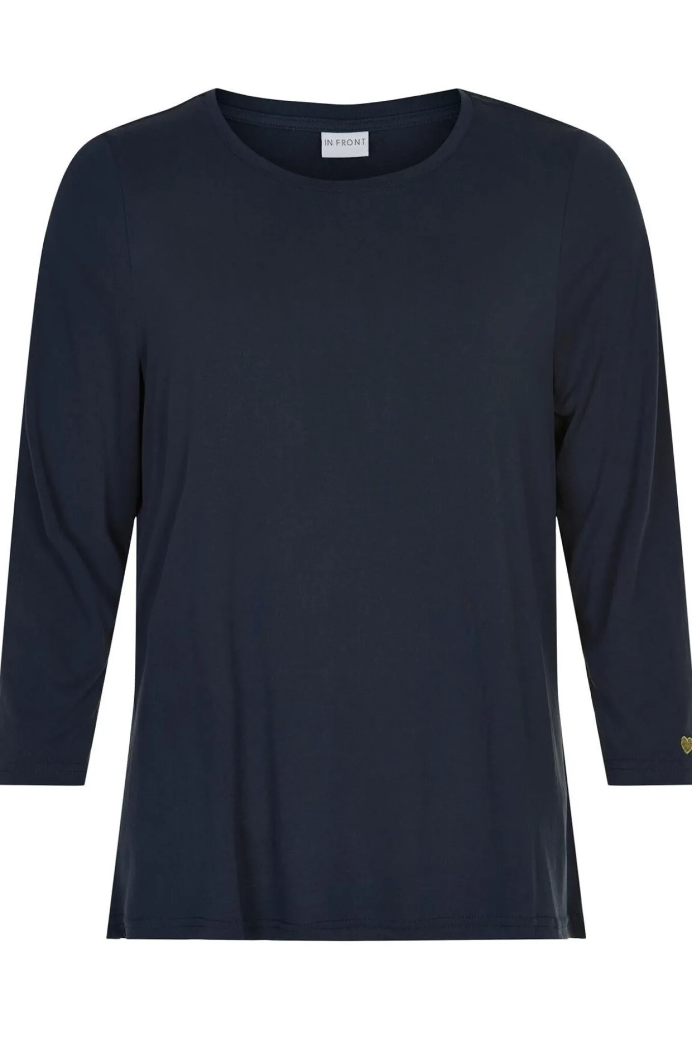 OBS! Fjernlager. Levering kan blive forlænget med 1-2 dage, hvis varen ikke findes i vores butik lige nu.Flot og enkel basis bluse fra In Front med ¾ lange ærmer og rund hals.