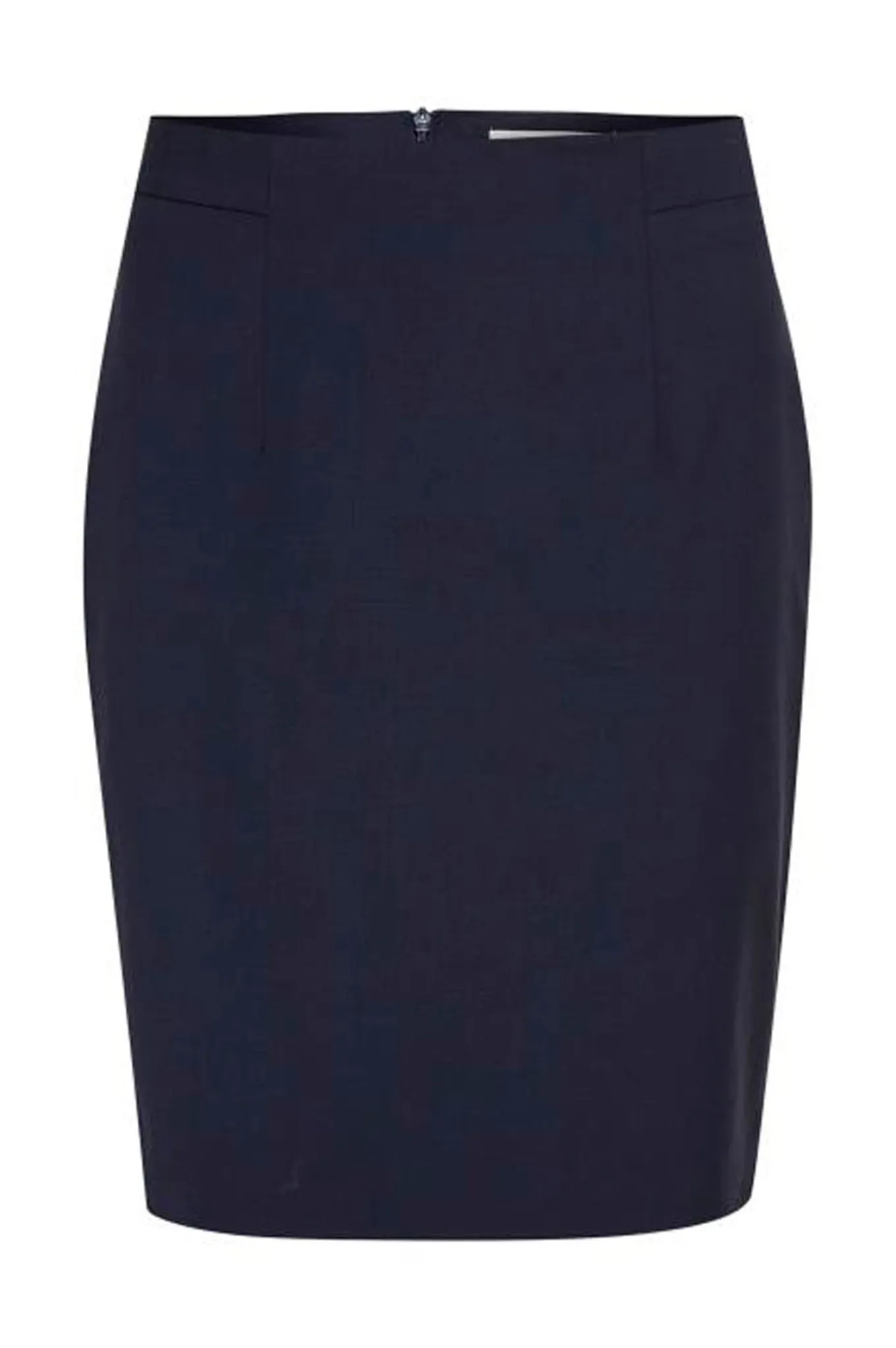 Levering kan blive forlænget med 1-2 dage, hvis varen ikke findes i vores butik lige nu.Feminin nederdel fra Inwear. Nederdelen har en skjult lynlås og en lille slids bagpå.