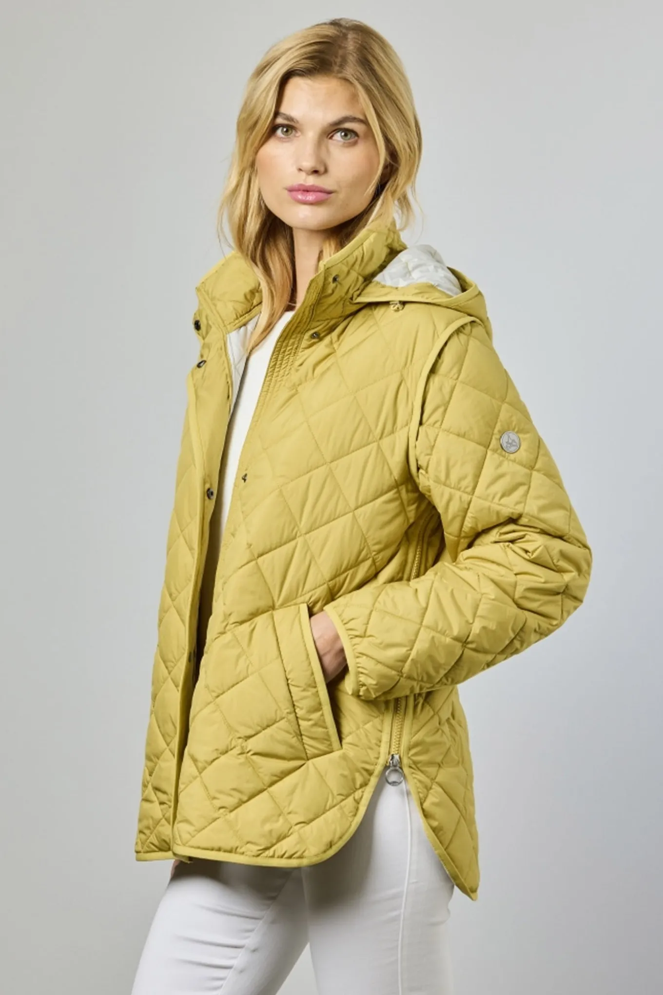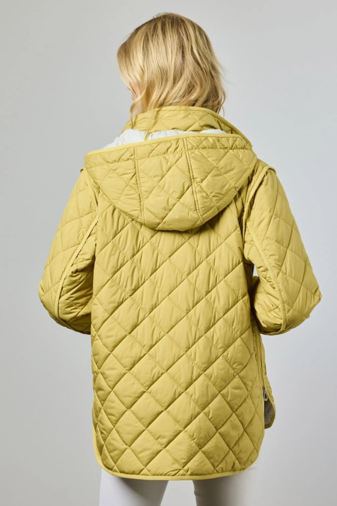 Jakken er fremstillet udelukkende i genanvendt polyester og har et markant diamantquiltet mønster samt gennemtænkte detaljer, der løfter dit hverdagsoutfit.