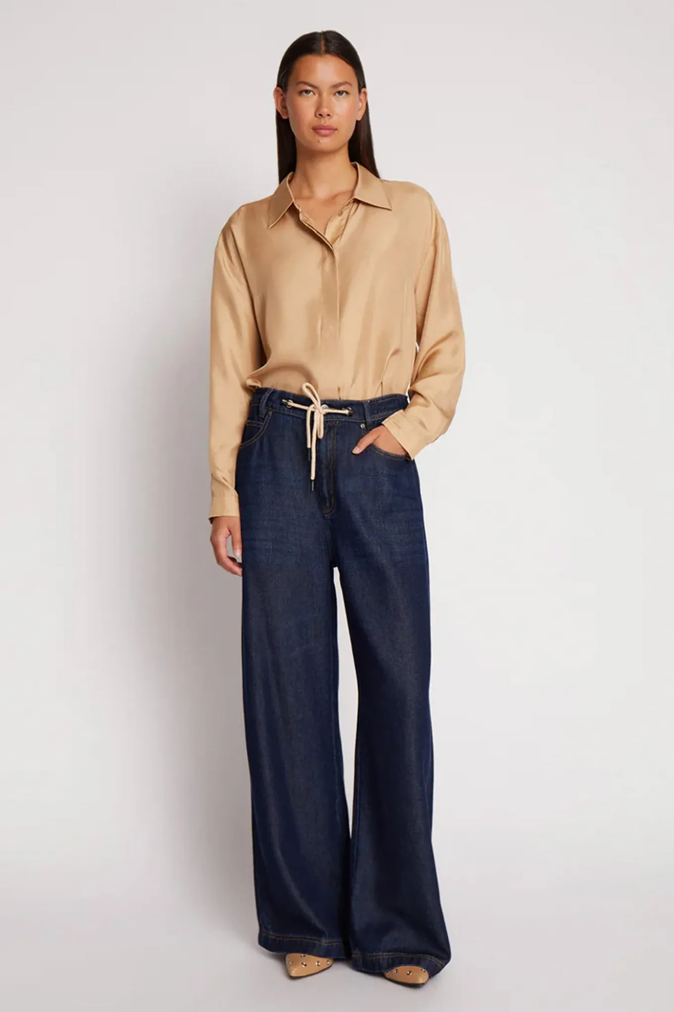 Opgrader din garderobe med disse alsidige bukser i en smuk indigoblå farve. Lavet af høj kvalitet fra Munthe, perfekt til ethvert outfit.