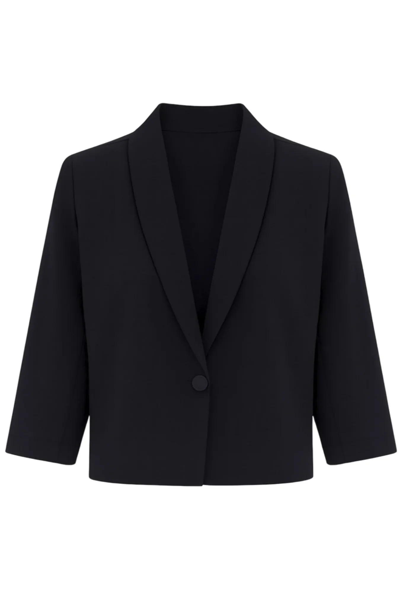 OBS! Fjernlager. Levering kan blive forlænget med 2-3 dage, hvis varen ikke findes i vores butik lige nu.Elegant og enkel blazer fra 2-Biz med ¾ lange ærmer, cropped længde og knaplukning langs fronten.