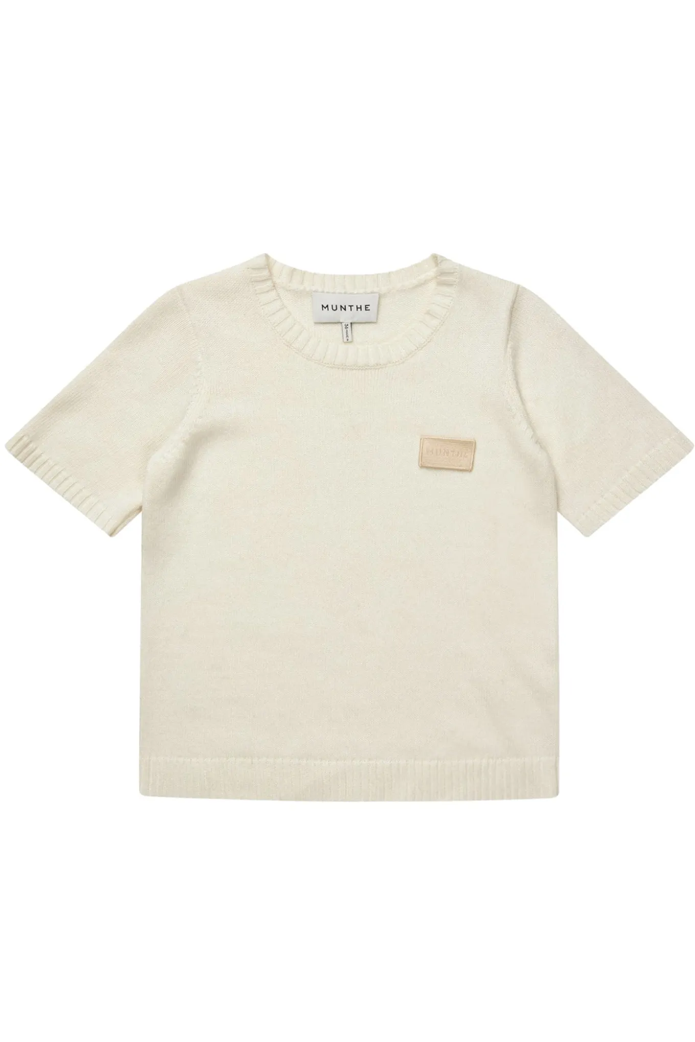 OBS! Fjernlager. Levering kan blive forlænget med 2-3 dage, hvis varen ikke findes i vores butik lige nu.Strik med en elegant MUNTHE logo patch på brystet. Denne strik har korte ærmer og er designet med en fin ribkant som afslutning.