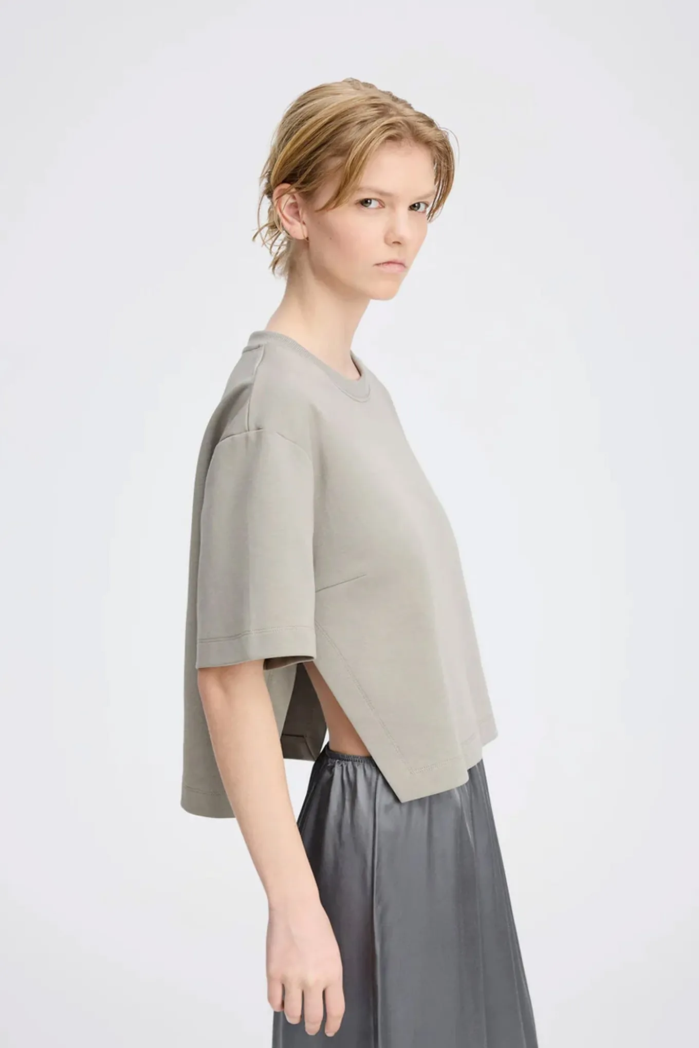 T-shirt, der består af to smukke styles: En klassisk, kort T-shirt og en elegant blondetop, som kan styles lag-på-lag eller bæres hver for sig. T-shirten er designet med slids i siderne.