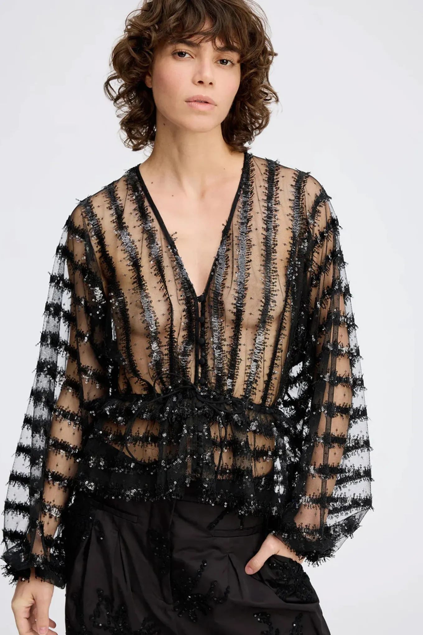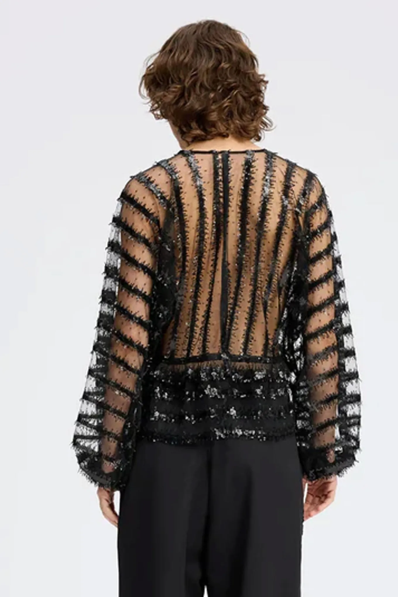 Få et elegant og tidløst look med denne sorte top fra MUNTHE. Fremstillet af 100% polyester, er den perfekt til enhver lejlighed.
