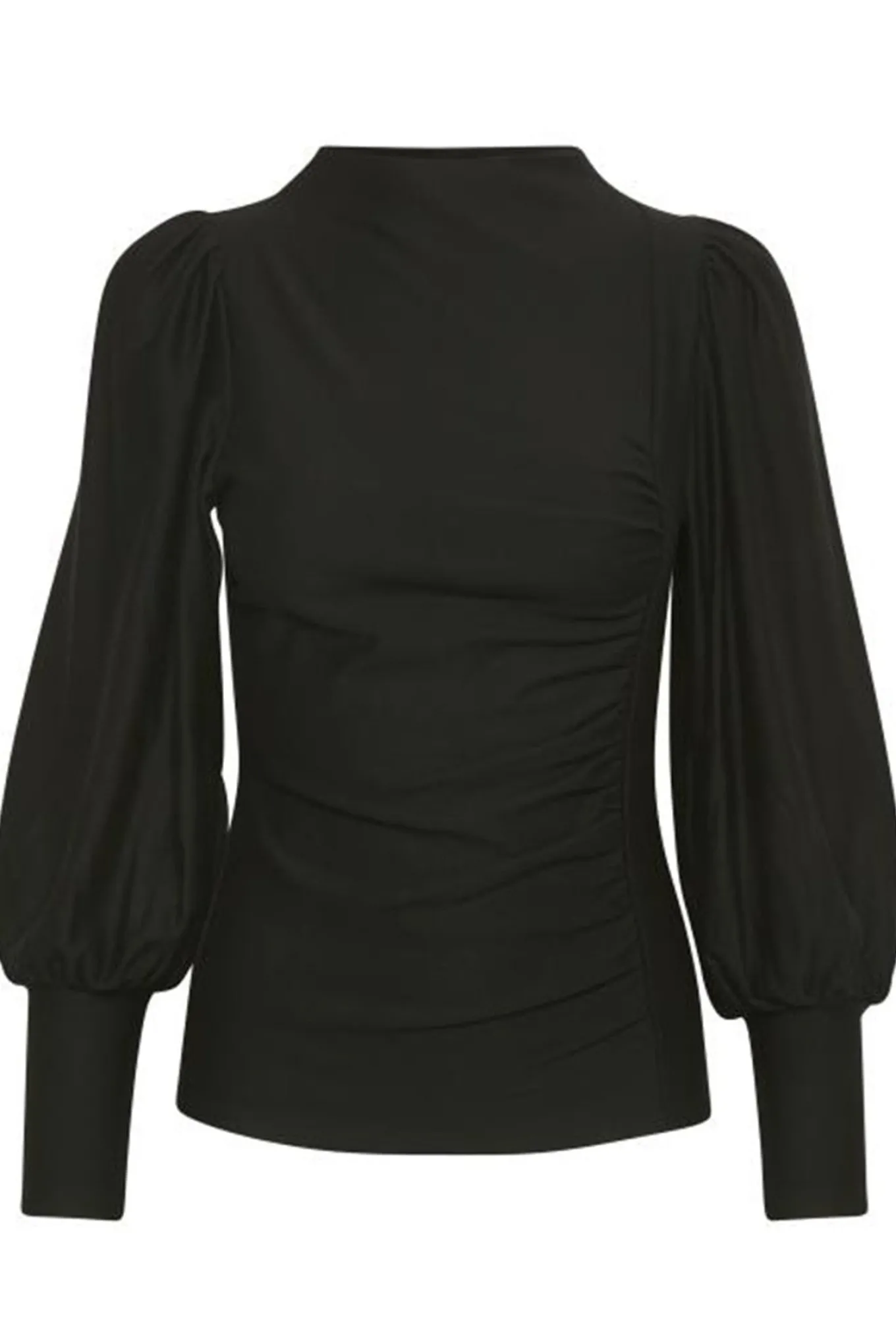 Levering kan blive forlænget med 1-2 dage, hvis varen ikke findes i vores butik lige nu.Skøn bluse med lange pufærmer og høj hals fra Gestuz.