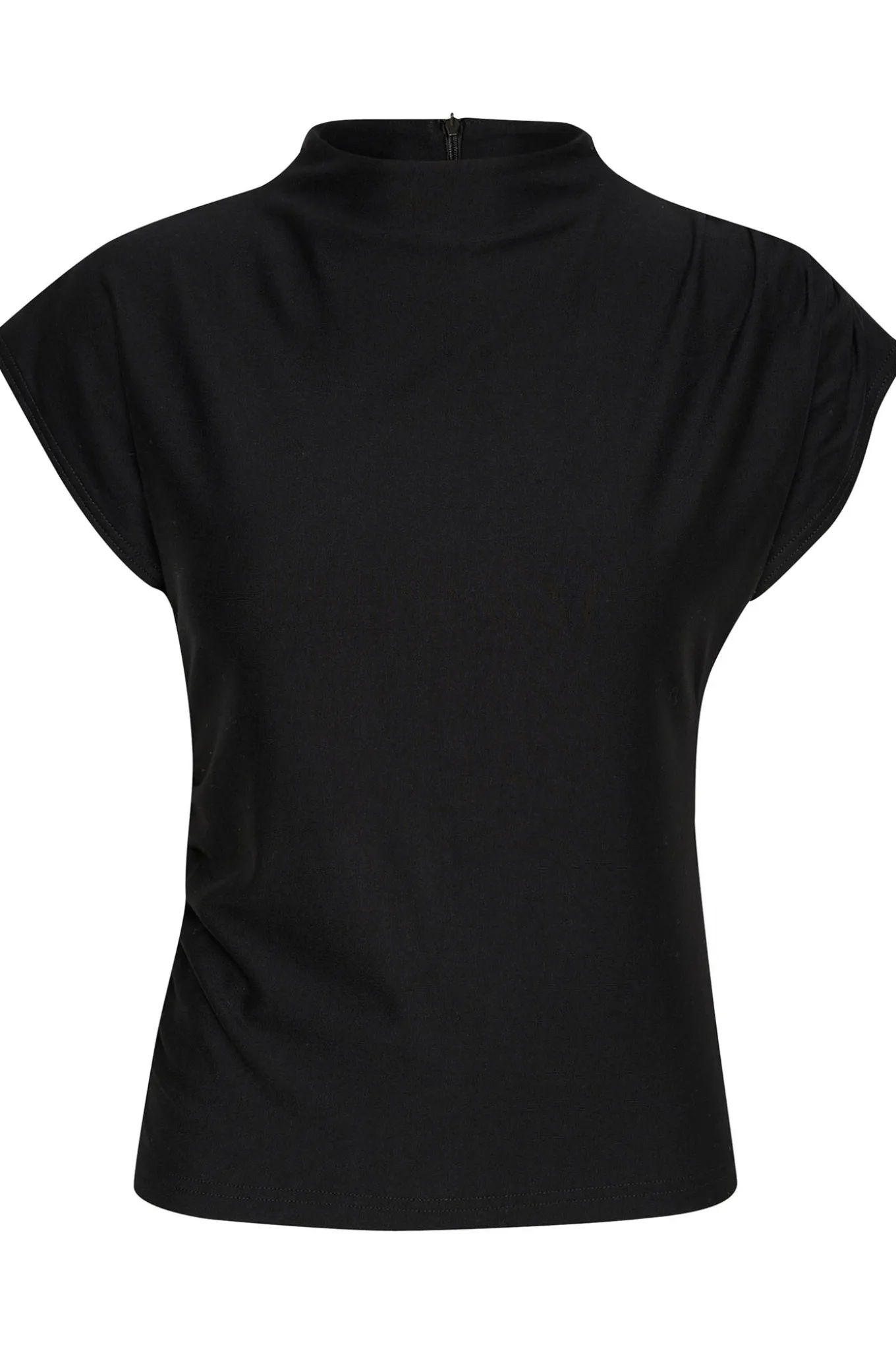 Elegant top fra Gestuz med små ærmer, høj hals og flotte draperet effekter. Toppen lukkes også i nakken med en diskret lynlås.