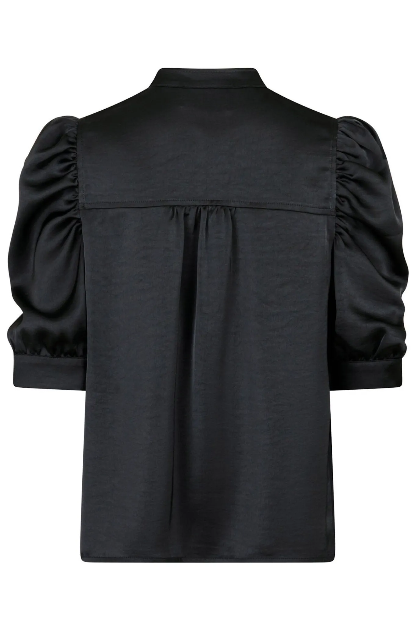 Feminin bluse fra Neo Noir med korte pufærmer, v-udskæring i halsen og en smuk satin kvalitet.