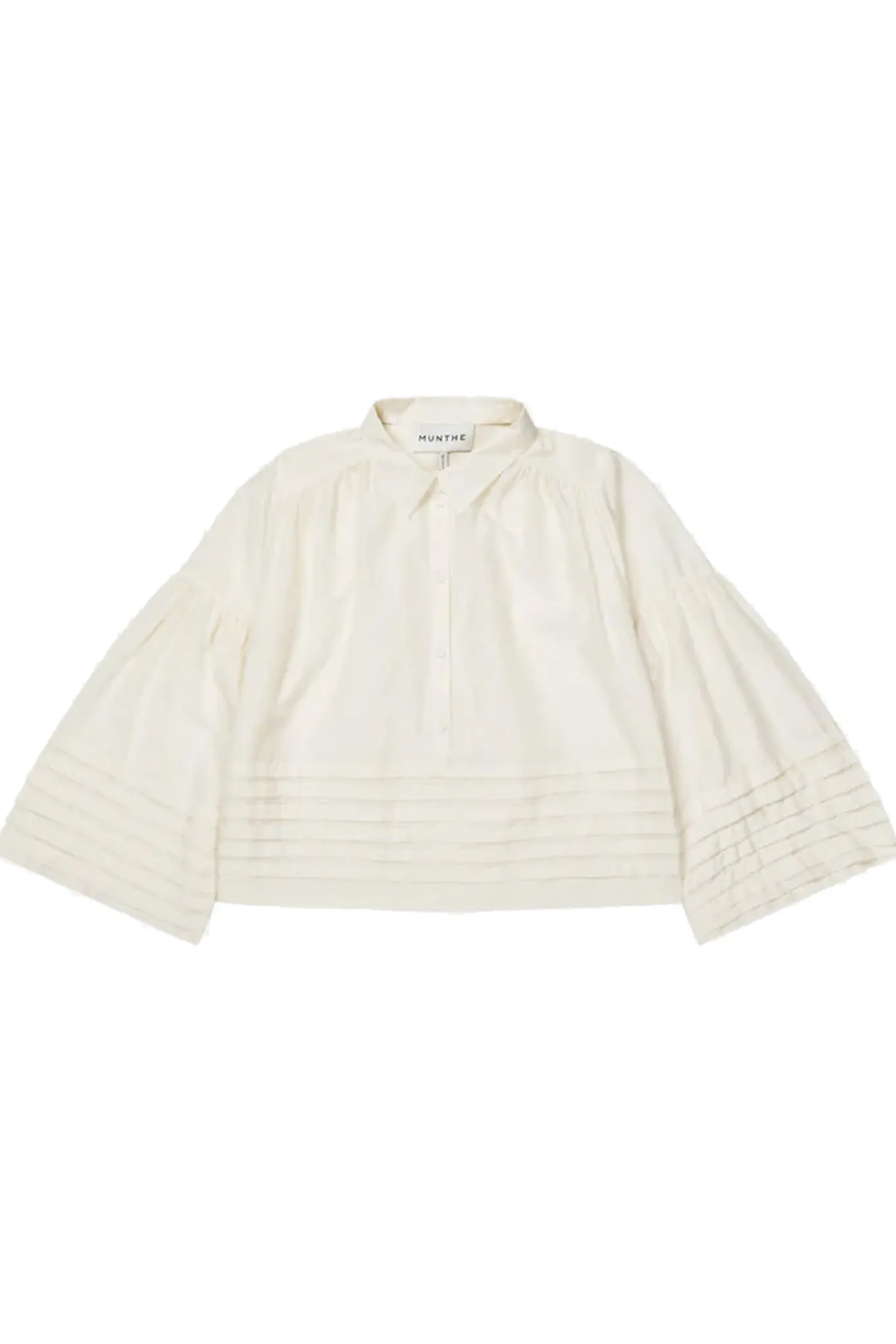 Skab et elegant og tidløst look med denne skjorte fra Munthe. Den er i en smuk ivory farve og er lavet af 80% Lenzing TM Ecovero TM og 20% silke. Perfekt til enhver lejlighed.